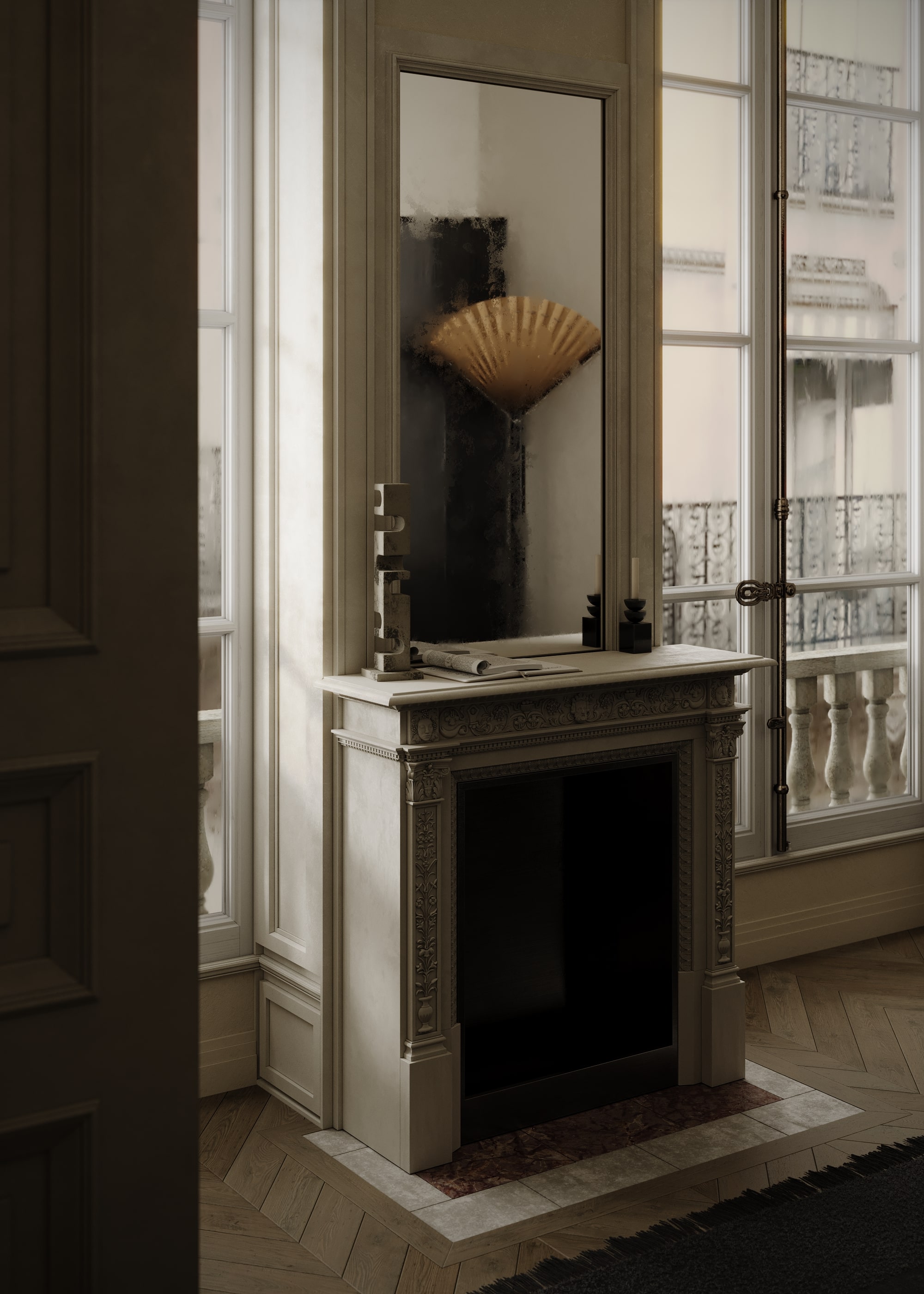 3d визуализация была выполнена по референсу, за основу были взяты фотографии реализованного интерьера архитектора Joris Poggioli. Больше ракурсов и процесс создания на Behance: