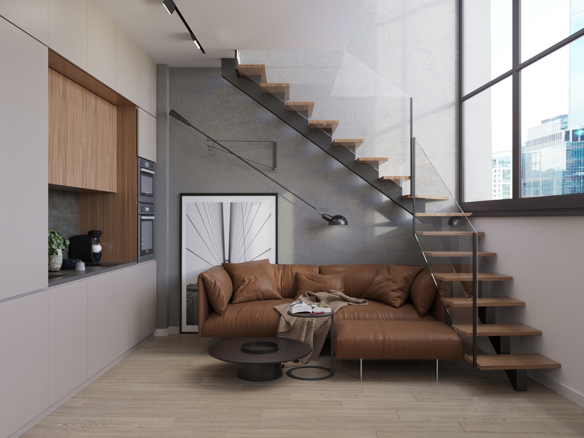 Если вы не компетентны, не говорите ерунды. С дизайном здесь тоже проблемы. Вы хоть понимаете, что целью дизайна является обеспечение удобства и приятное глазу взаимодействие среды с людьми? Важное требование к планировке кухни нарушено. Для открывания духовки вниз, нужно предусмотреть расстояние не менее 100 см. А что мы имеем? Расстояние около 60 см и квест в виде дивана с подачей горячего блюда сразу на плед. Да и близко к стене технику нельзя ставить... А что у нас с обеденной группой? Судя по размеру это кофейный столик на 2 персоны + очередной квест для посадки и высадки. В подобных условиях стул у навесного шкафа видимо для кота. Диван под открытой лестницей (со стороны пуфика есть травмоопасное место в виде металлического столбика) будет постоянно в грязи, как бы чисто в квартире не было. Подобное решение можно принять если лестница имеет закрытую конструкцию. Да и ТВ непонятно для каких целей. С обеденной группы не посмотреть, с дивана голова будет постоянно под углом. Вот вам и ваш супер дизайн с его травмоопасными удобствами.