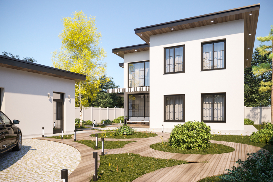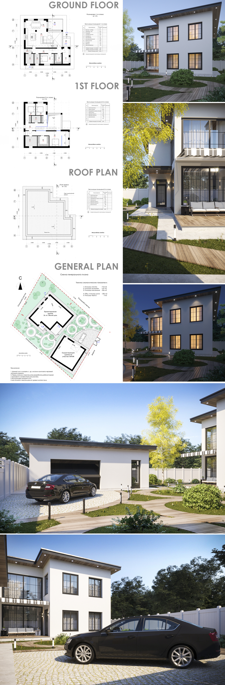 Работа выполнена не на конкурс, не для того, чтобы показать качество владения 3д, задача была сделать простой и лаконичный дом) Рендеры соответственно делал только для понимания объема)
