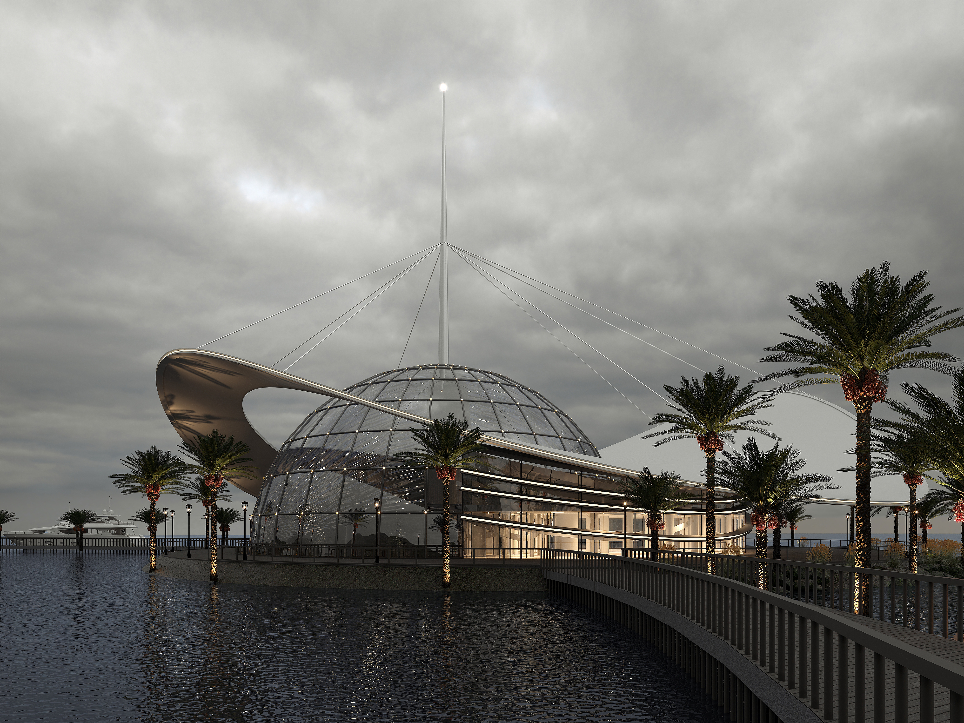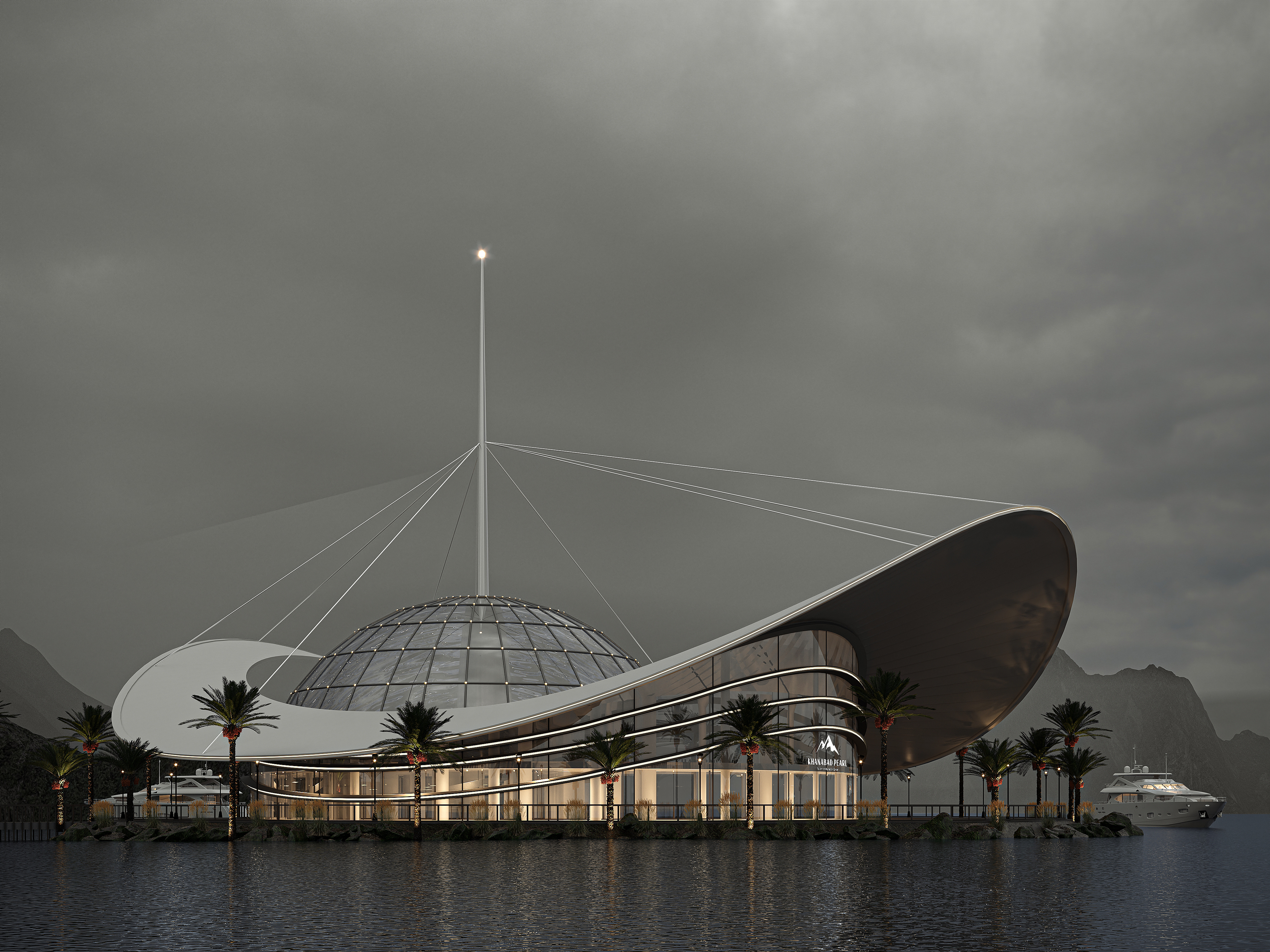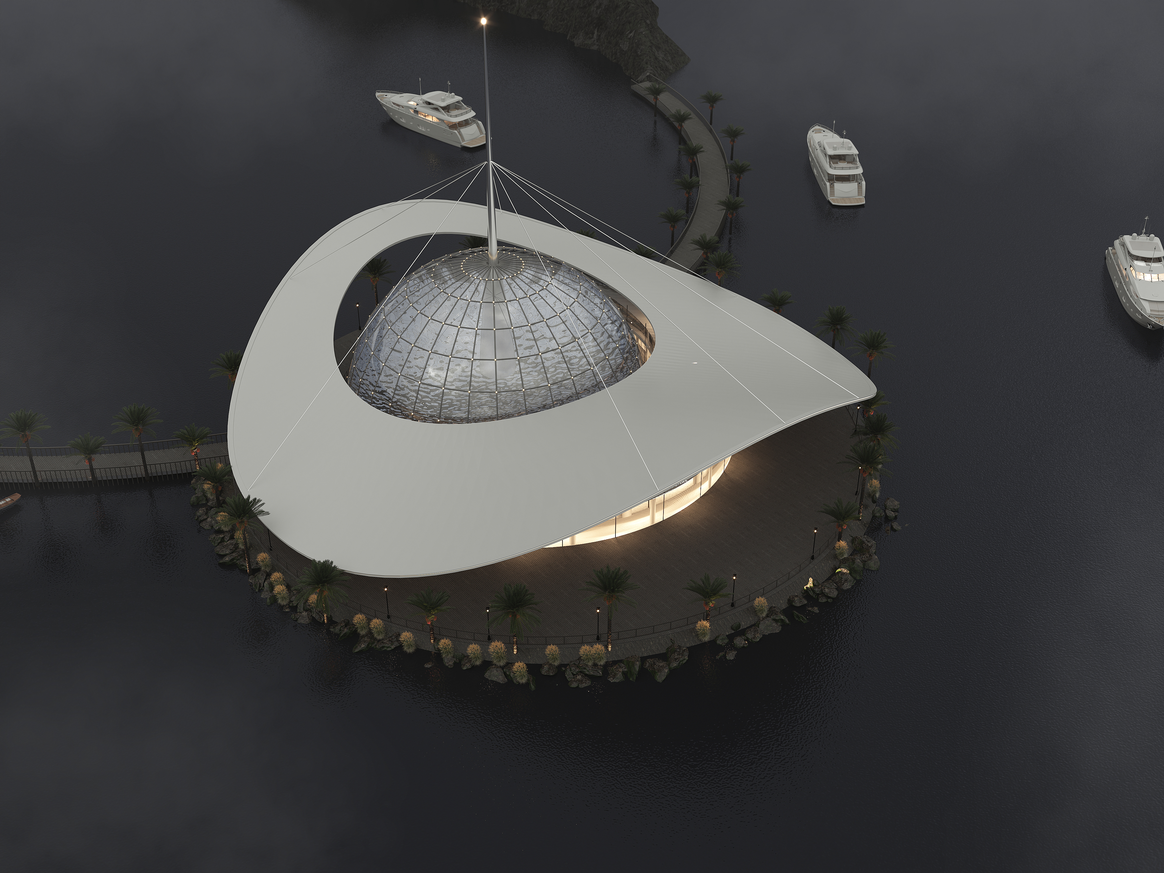 A conseptual tourism center designed with the spirit of a cloudy day shaped like a pearl in motion. It rests crown on the shore - harmonizing with nature, reflecting calm, and inviting wonder.