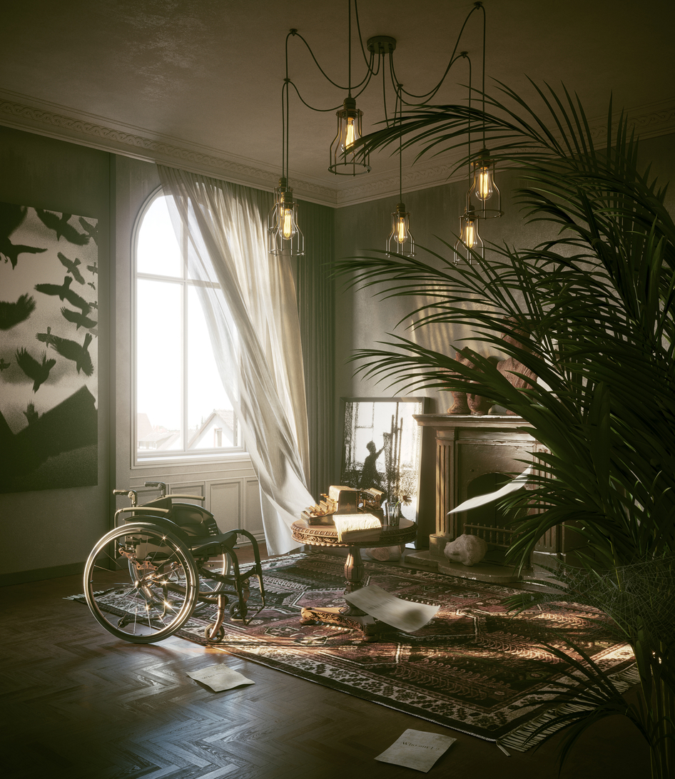 атмосфера, детали, проработка супер! но вызывает вопрос закрытое окно и штора в движении возле него)