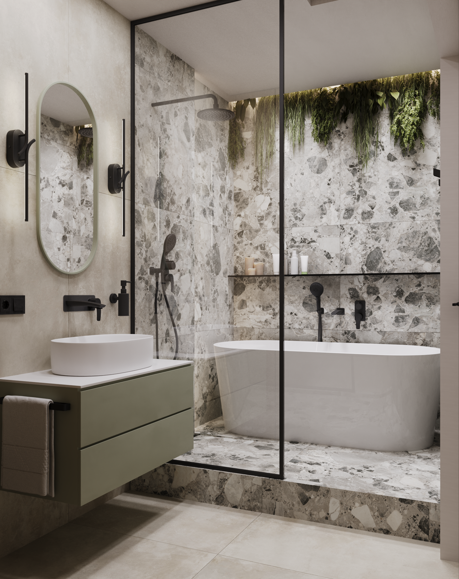 красиво, вот только растения над ванной это же только в фантазии возможно?