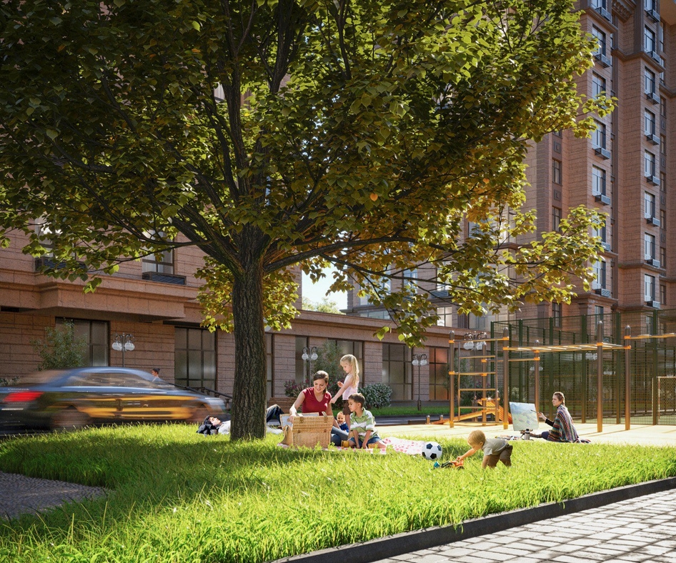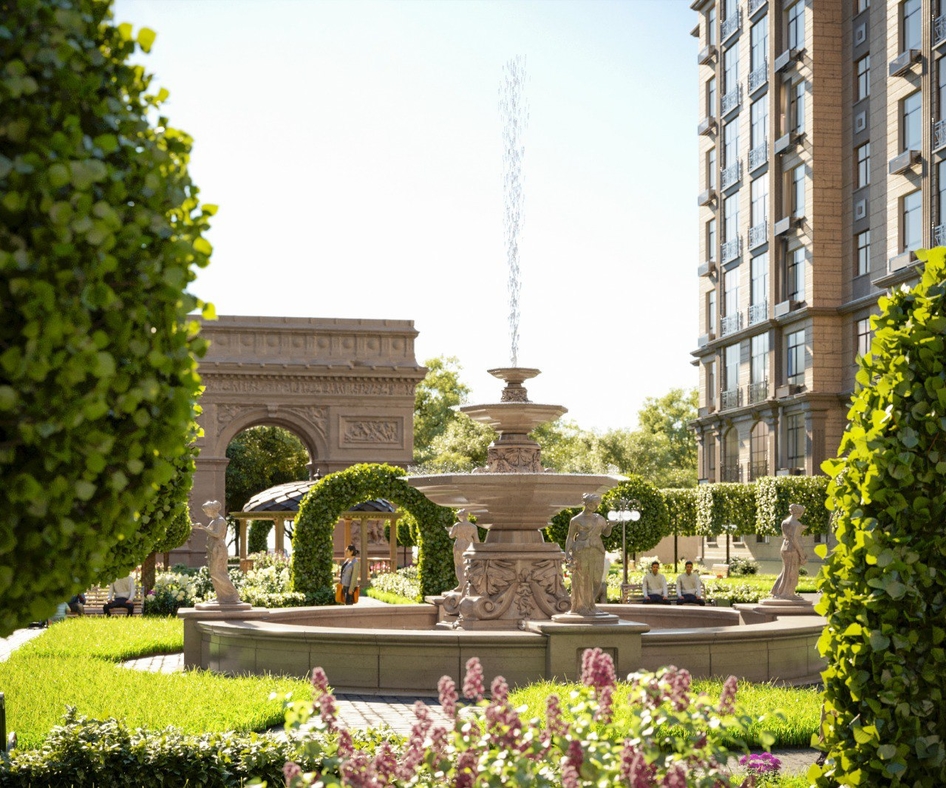 Хорошая работа. Только фонтану не хватает еще воды и тротуар выглядит странно.