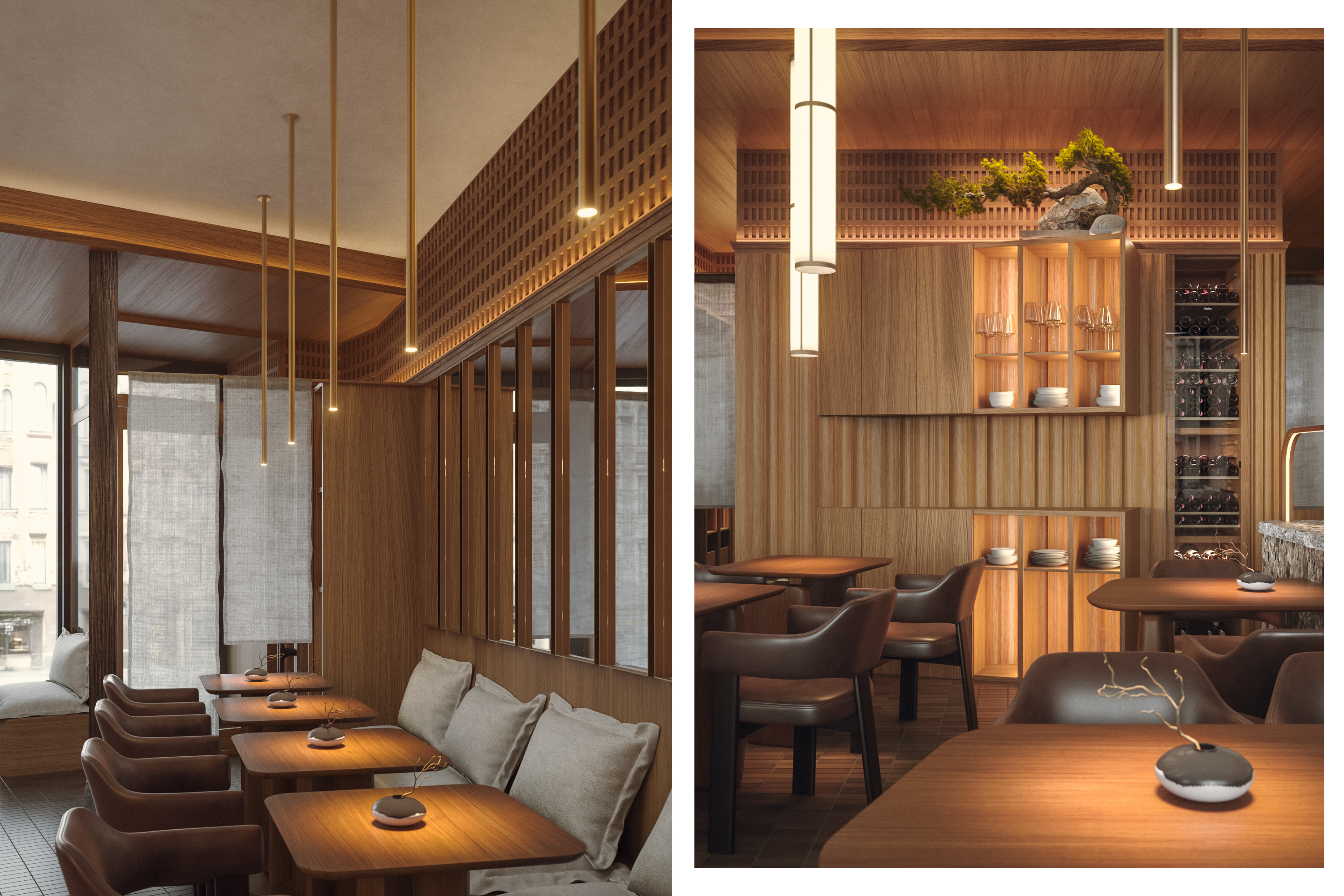 Проект интерьера ресторана азиатской кухни Дизайнер: Мария Фёдорова Визуализация: Илья Блинов 3Ds Max, Corona, Photoshop