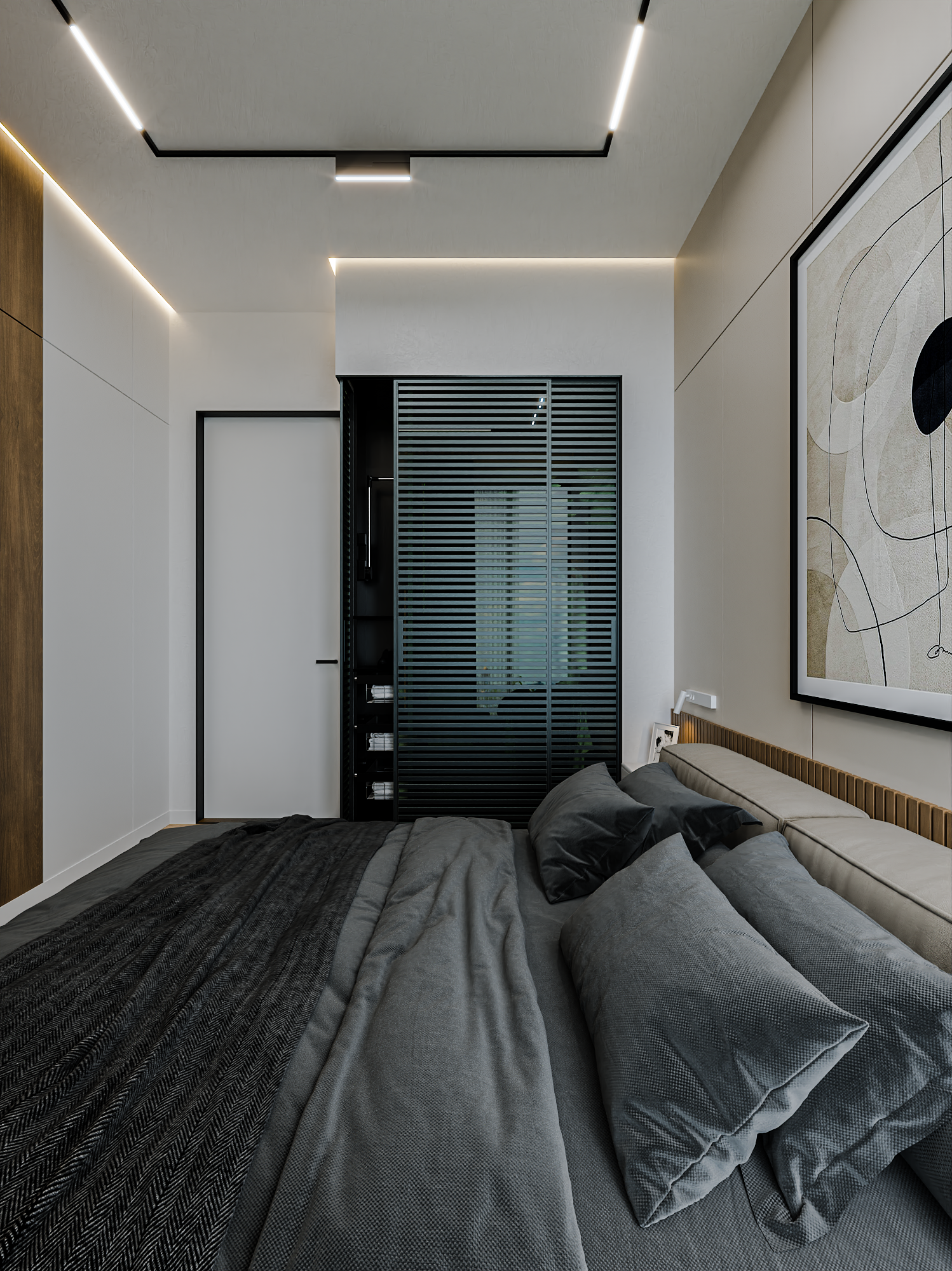 Baku- Ag Sheher_Apartment_Minimalistic Bedroom Design.