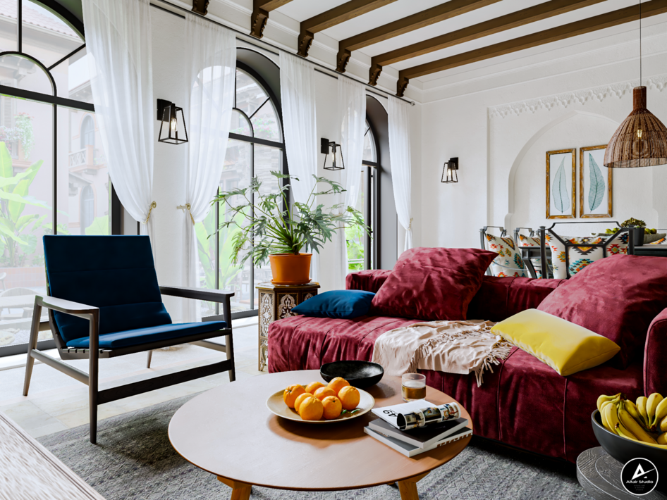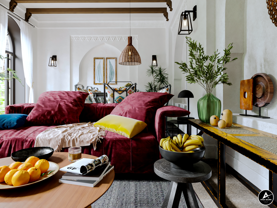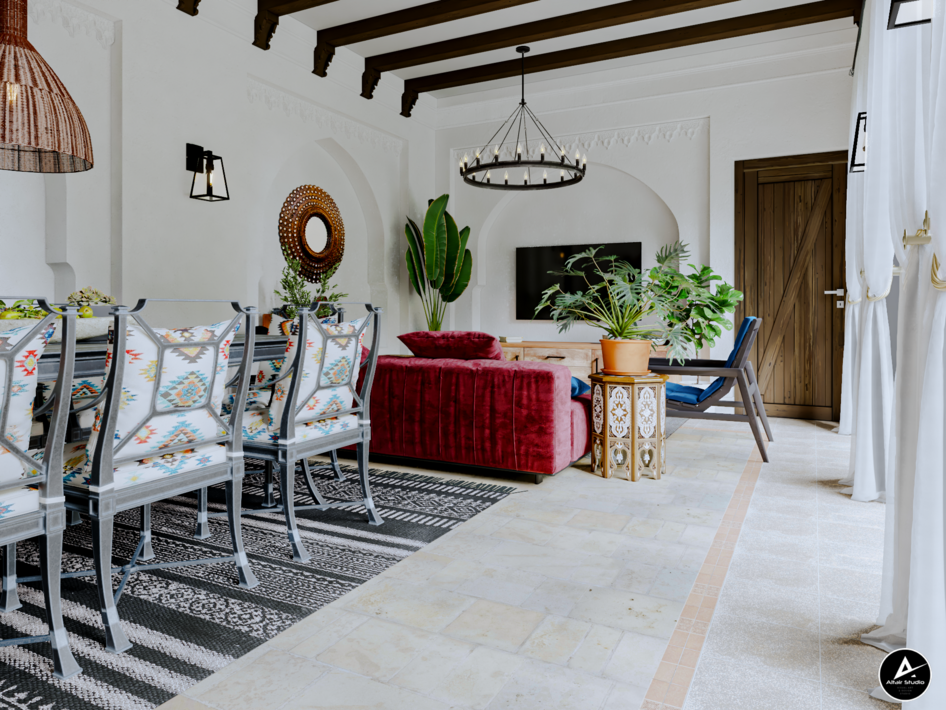 White Morrocan Style Interior Software: Autodesk 3dsMax l Chaos Group V-Ray 5.2 l Quixel Megascan Library l Adobe Photoshop