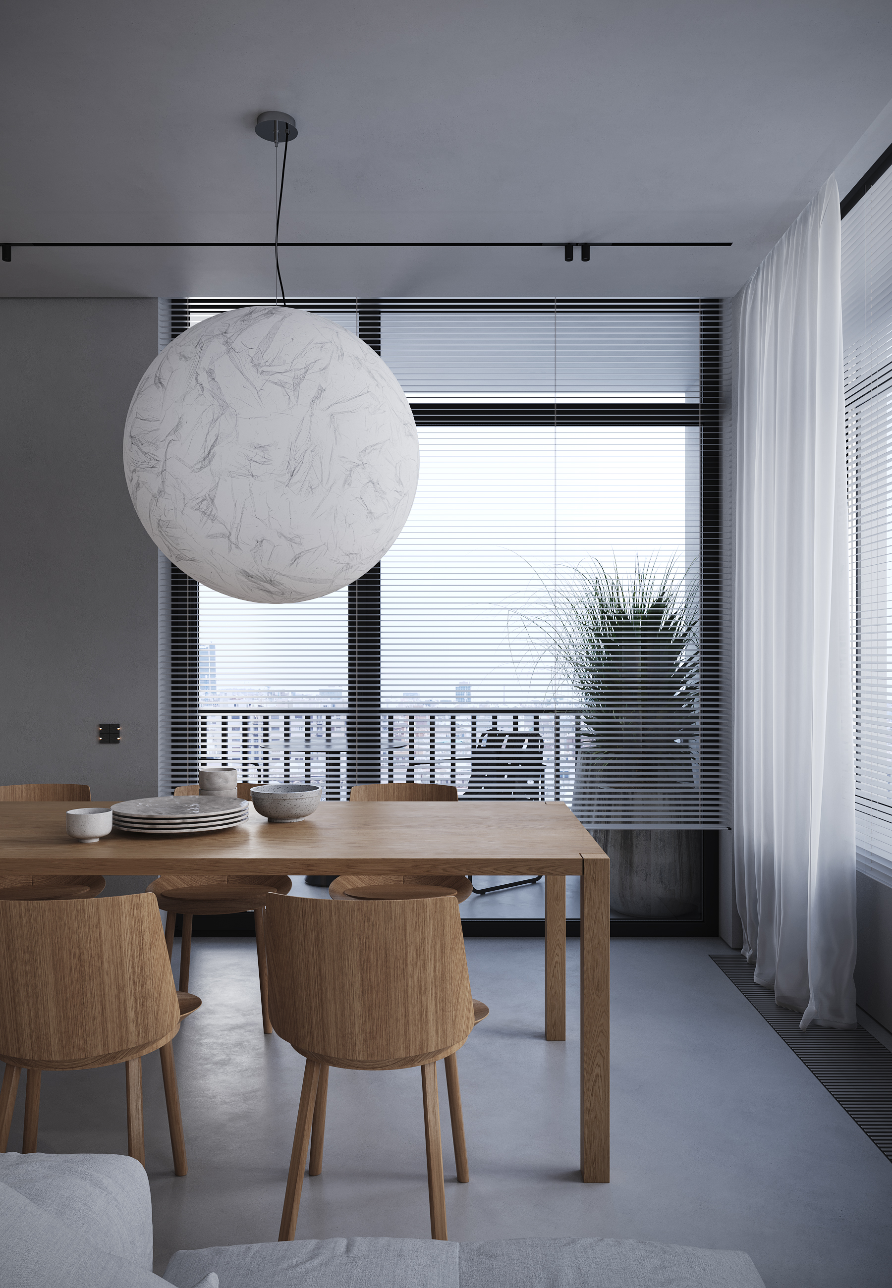 A space where balance reigns. Shades of grey blend softly with clean lines, creating an atmosphere of peace and comfort.
