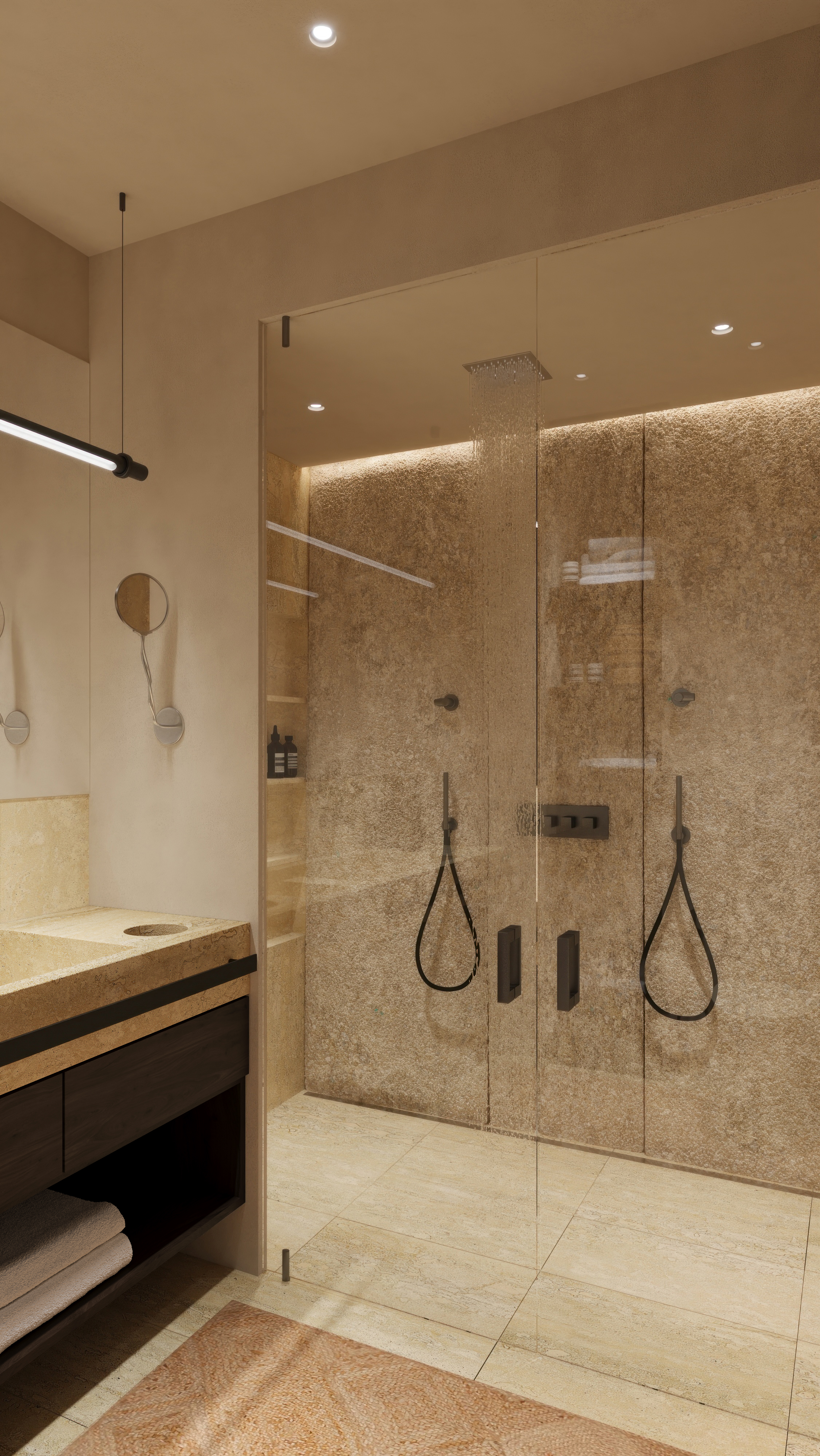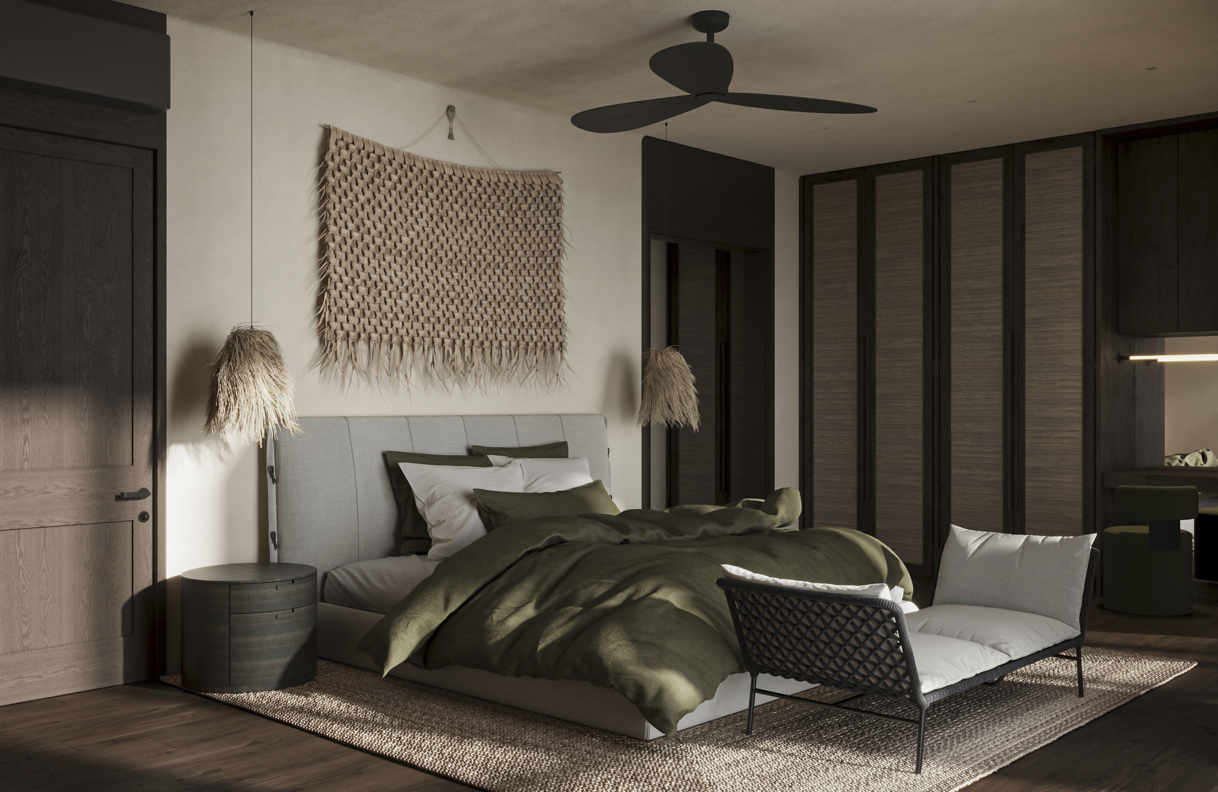 Интерьерная визуализация квартиры в аутентичной стилистике Бали. Дизайн - Anastasia Bozhinskaya Interior Design Studio (Москва). Визуализация - Козырь Яков