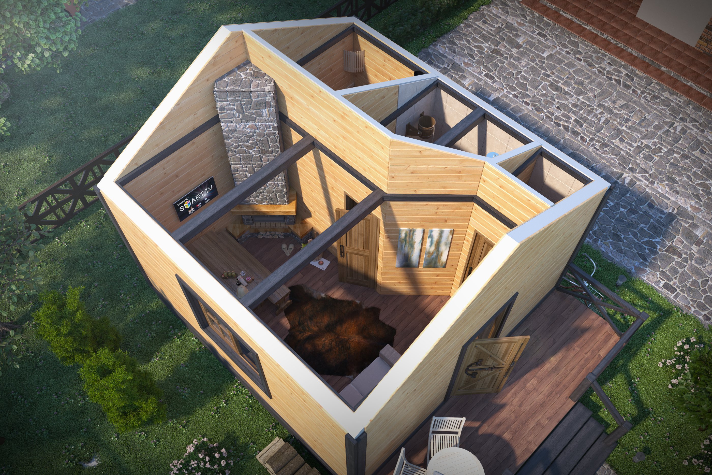 Визуализация небольшой баньки по эскизам заказчика