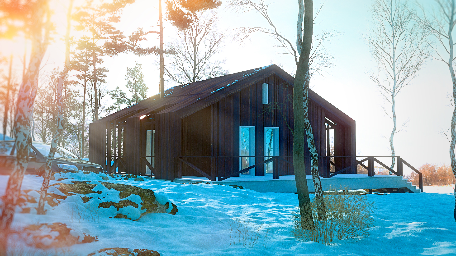 Маленький домик зимой в лесу. Сам проект тут: