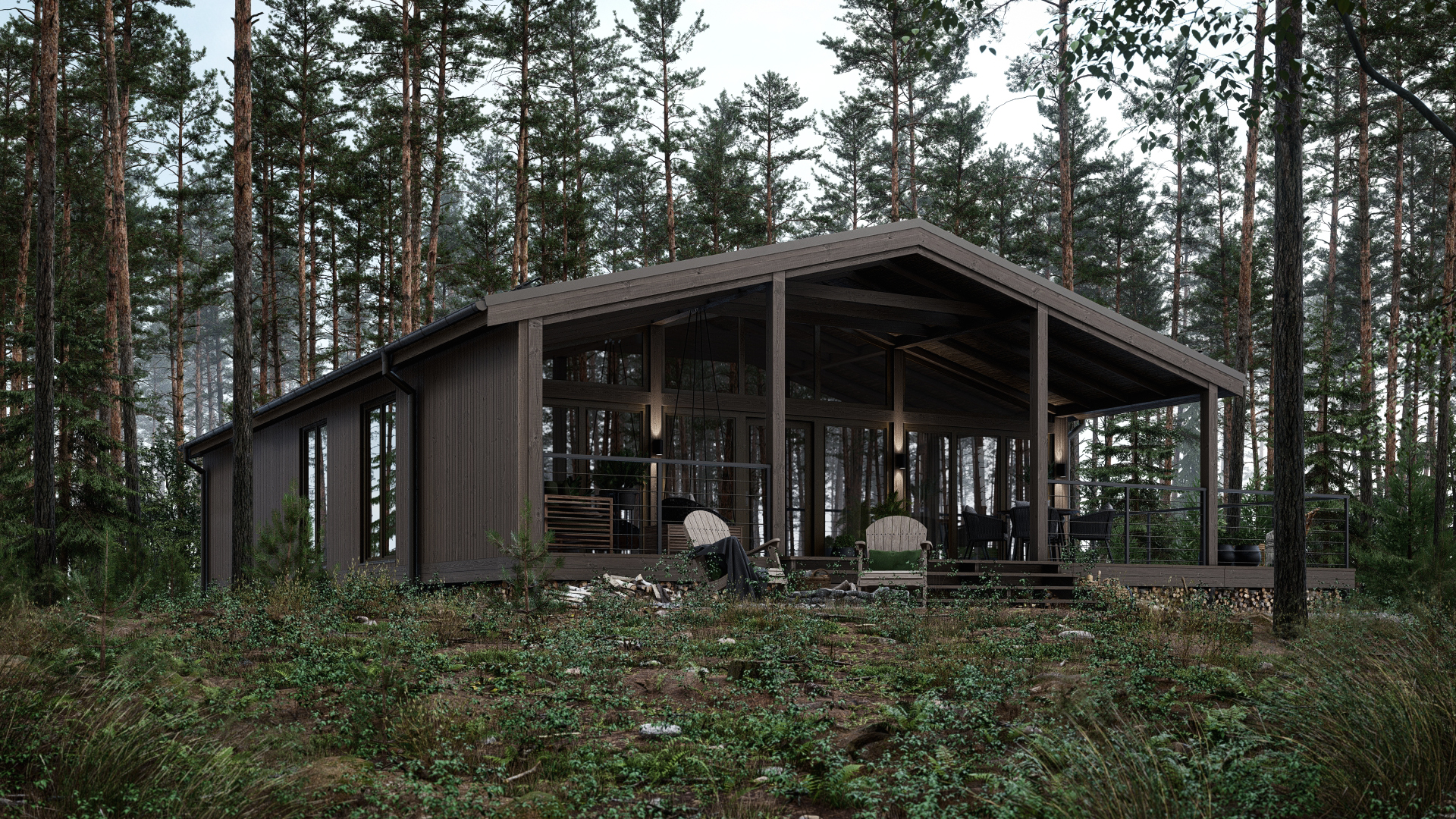 BARN HOUSE IN A PINE FOREST Visual: BystrykhAndrey Project: "КОНСТРУКТОР" modulcon.ru Year: 2022 Soft: ArchiCAD | Lumion 12 Behance: