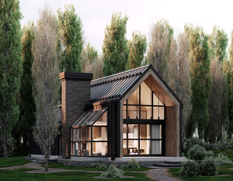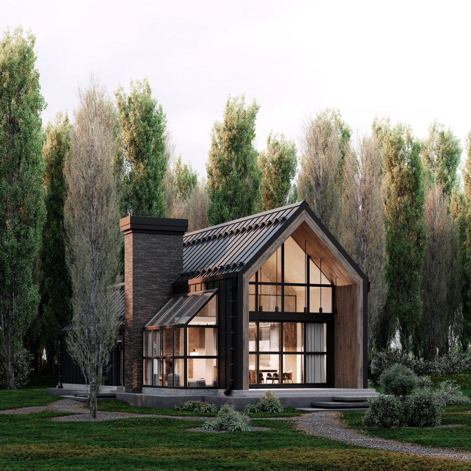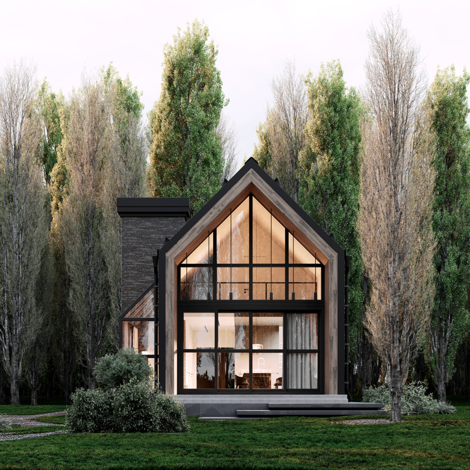 Барнхаус в густом лесу.