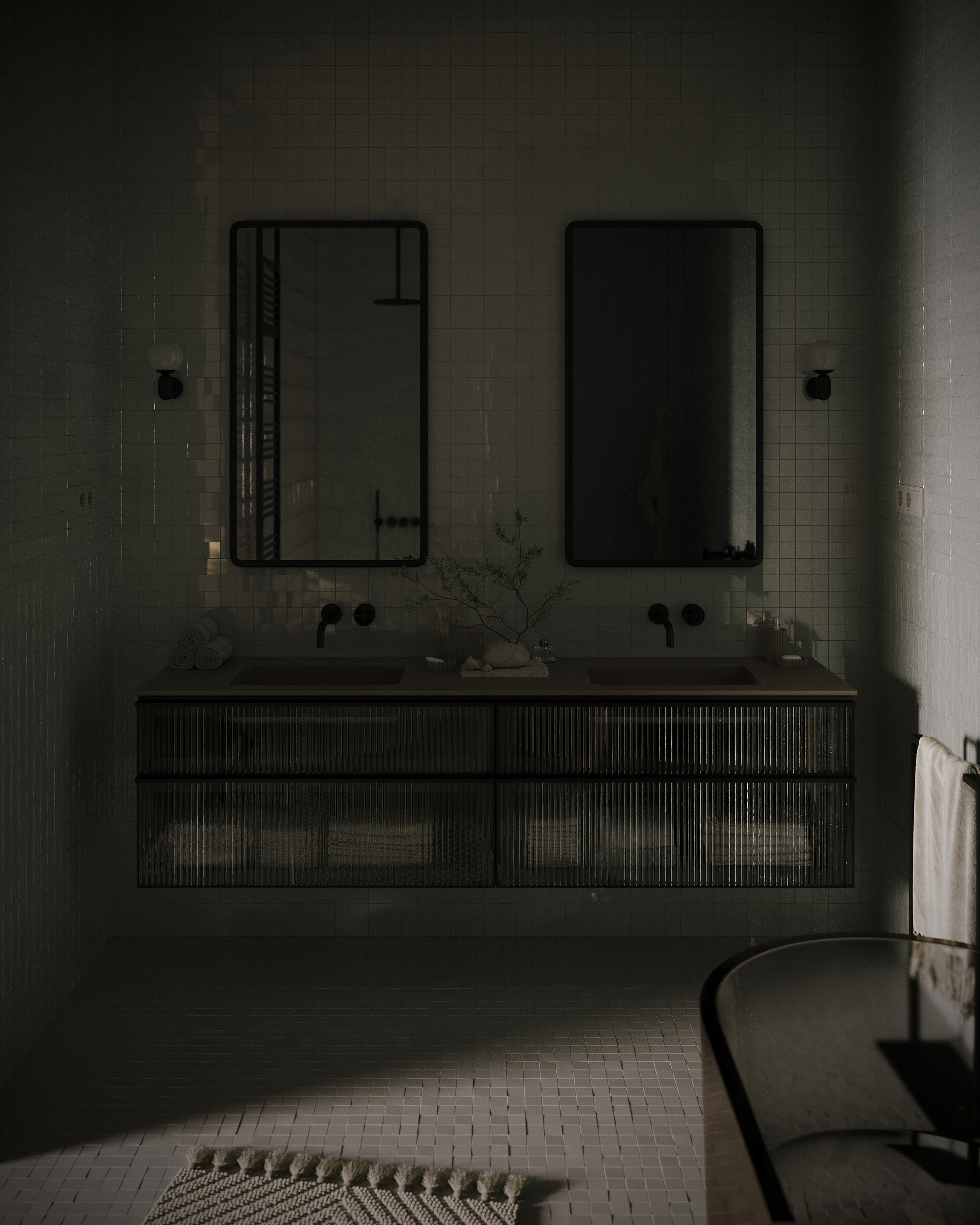 An intimate residence where calm minimalism meets expressive detail - sculpted forms, deep textures, and a quiet palette of stone, linen, and wood.