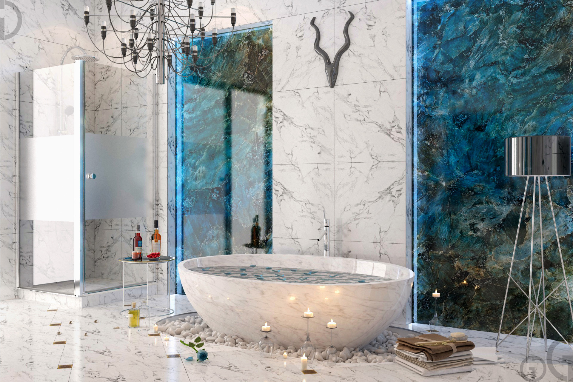 Голубой мрамор красивый получился.