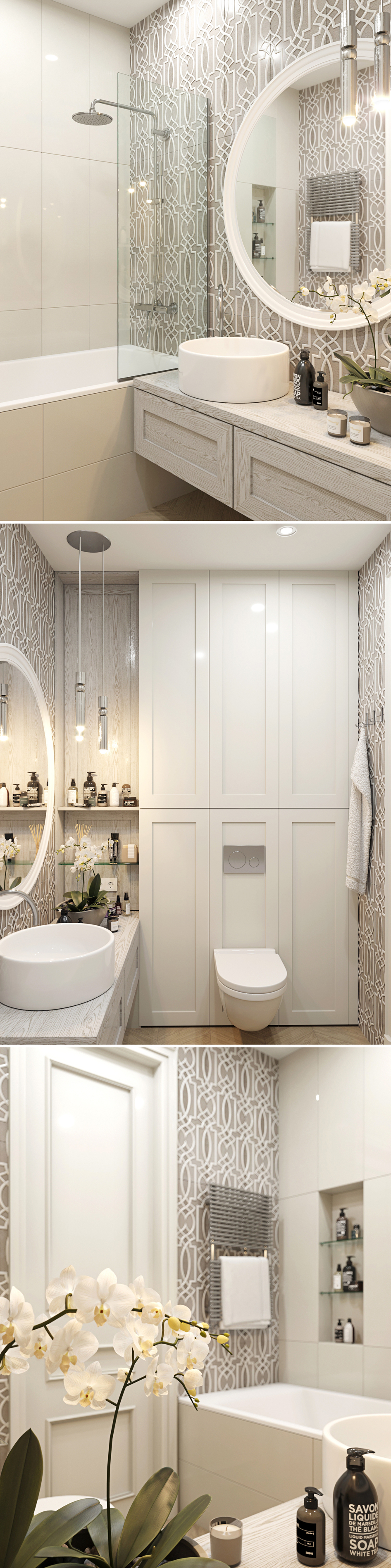 Ванная в современном стиле с нотками ретро. Дизайн и Визуализация: Анастасия Гвоздева