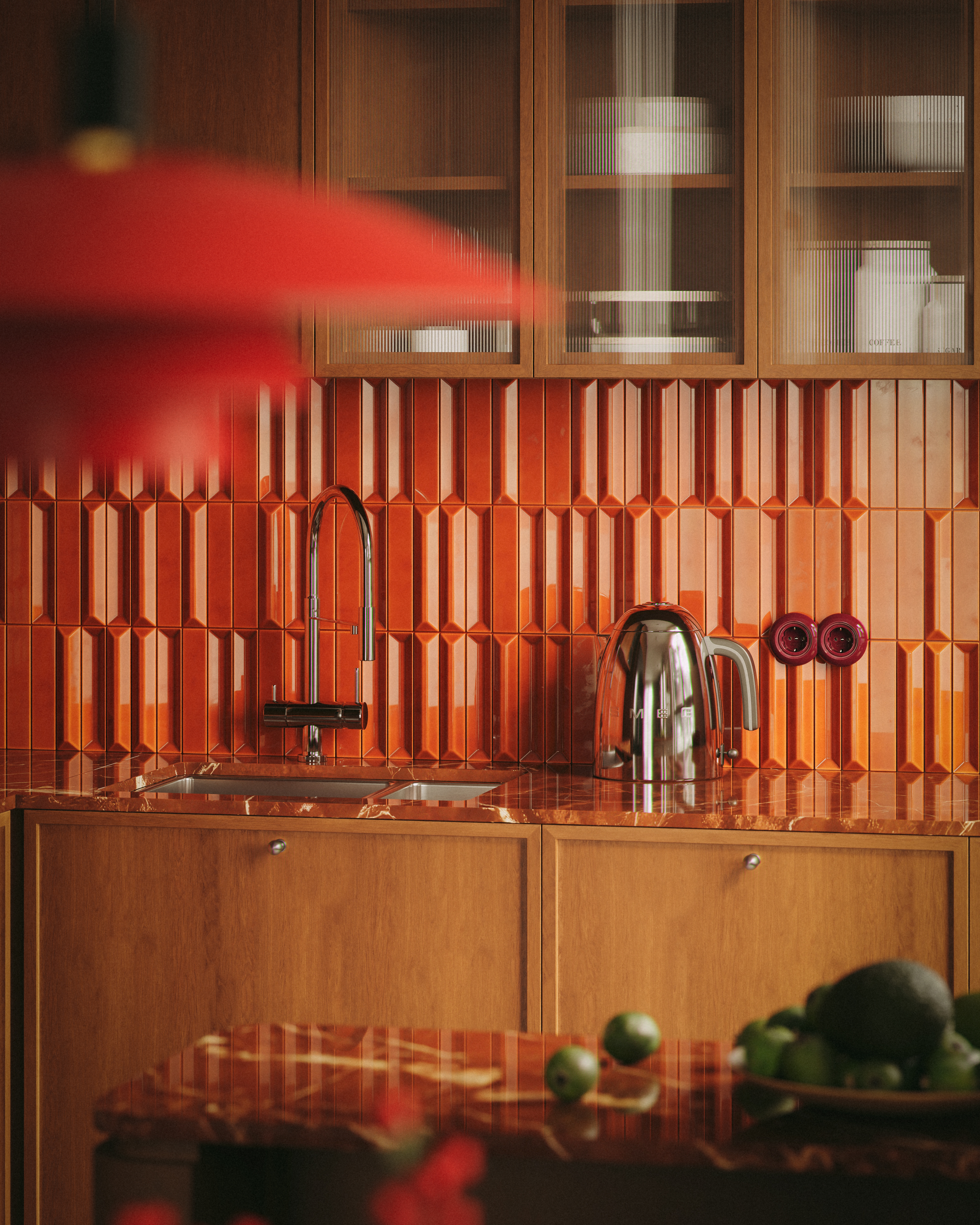 Прикольная цветовая гамма. Но розетки встроить в такую плитку - это наверно 80-й уровень плиточника должен быть