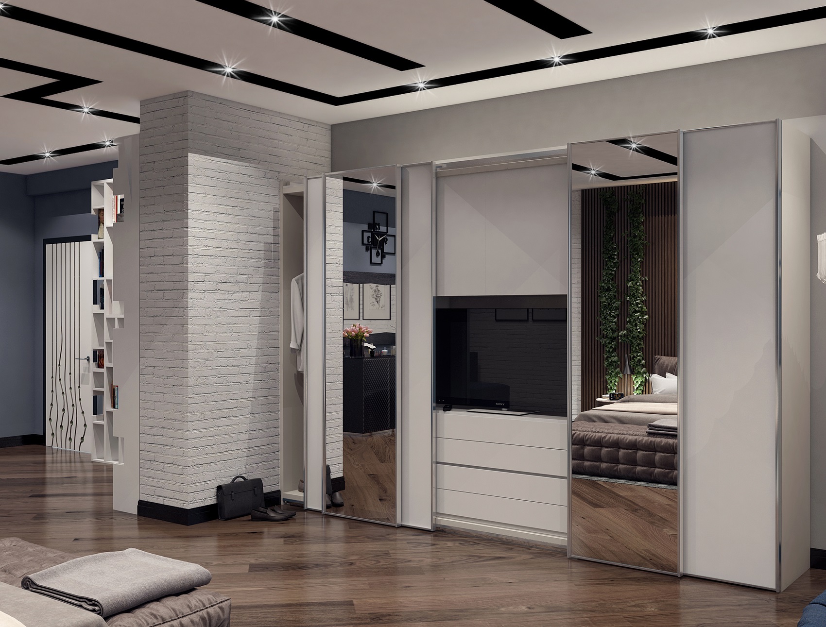 неплохо по визу,там вон стенка вроде небольшая кирпичная,такая текстурка с бампом впечатление портит,думаю для такого куска можно было бы сделать геометрией! было бы по приятней) ну и светлячки на точечных светильниках немного впечатления портят,самих светильников то даже и не видно,только одни светлячки)) а так гуд!