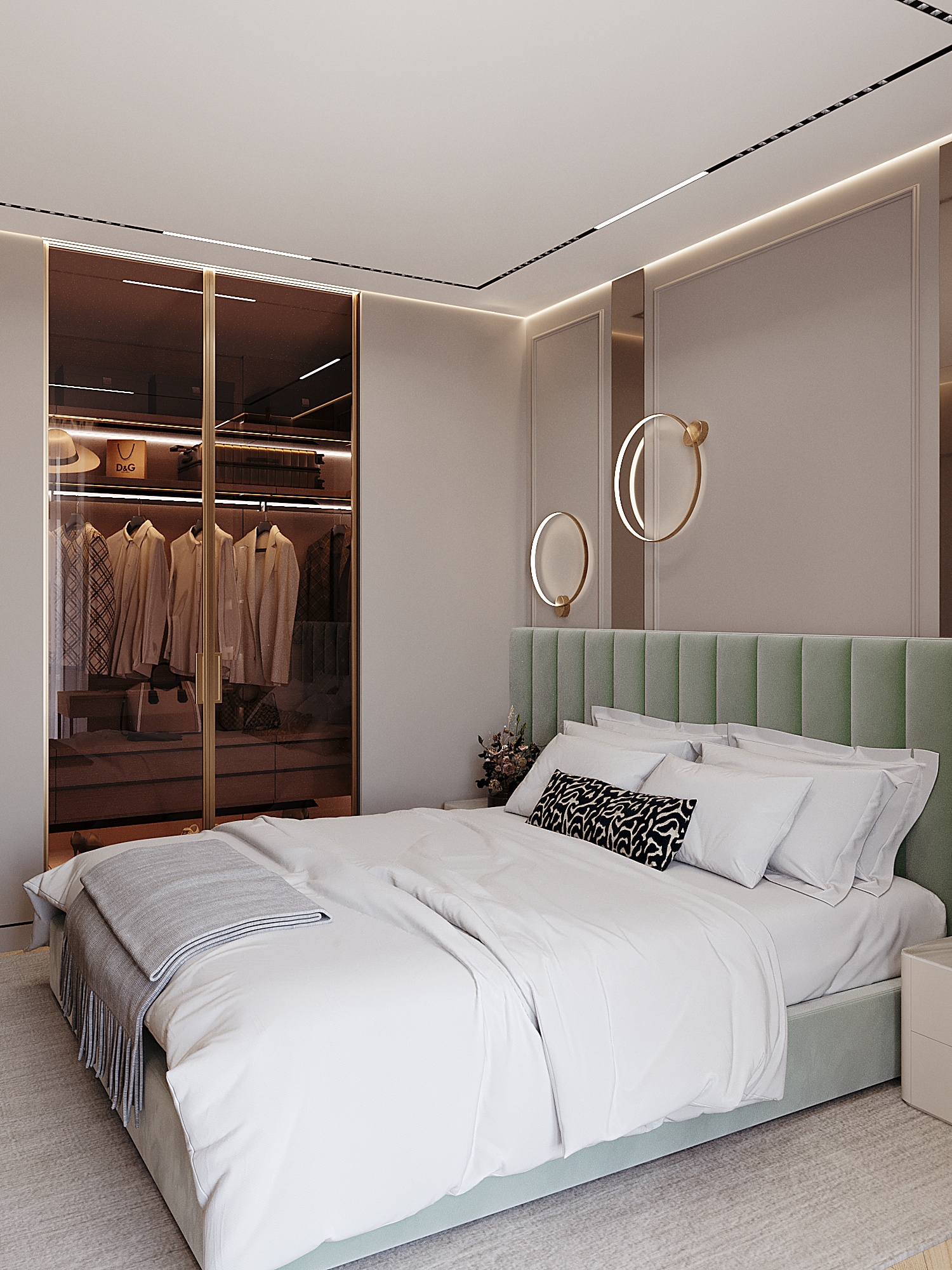 СПАЛЬНЯ С ГАРДЕРОБОМ часть проекта квартиры 36,5 м² г. Сочи design: Ирина Толкачева visualisation: SILINSKAYA [3D-визуализация] Software Used: 3dsmax / Chaos Corona