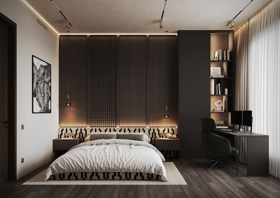 Визуализация спальни в квартире 140 м.кв.