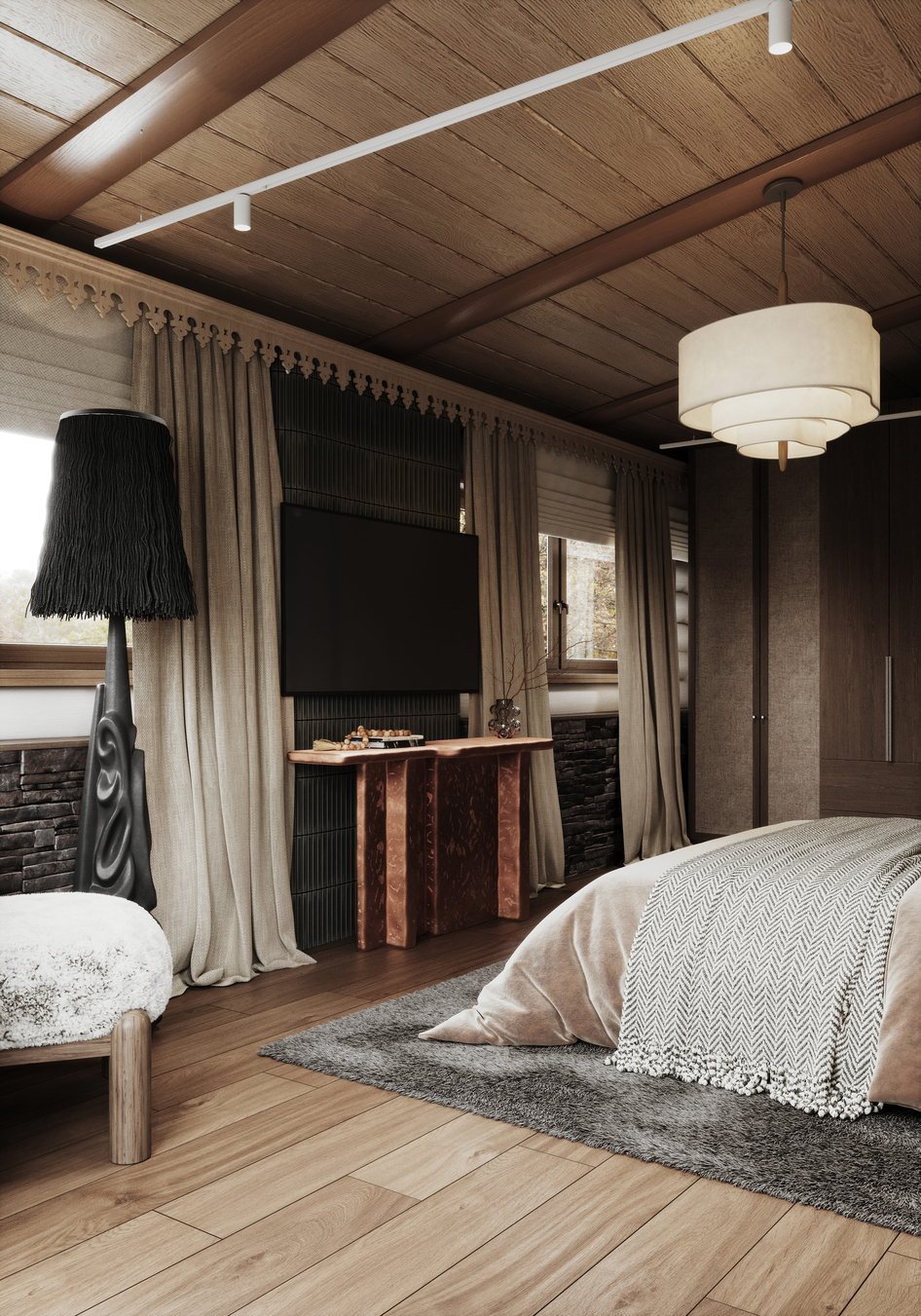 Спальня в доме из бруса