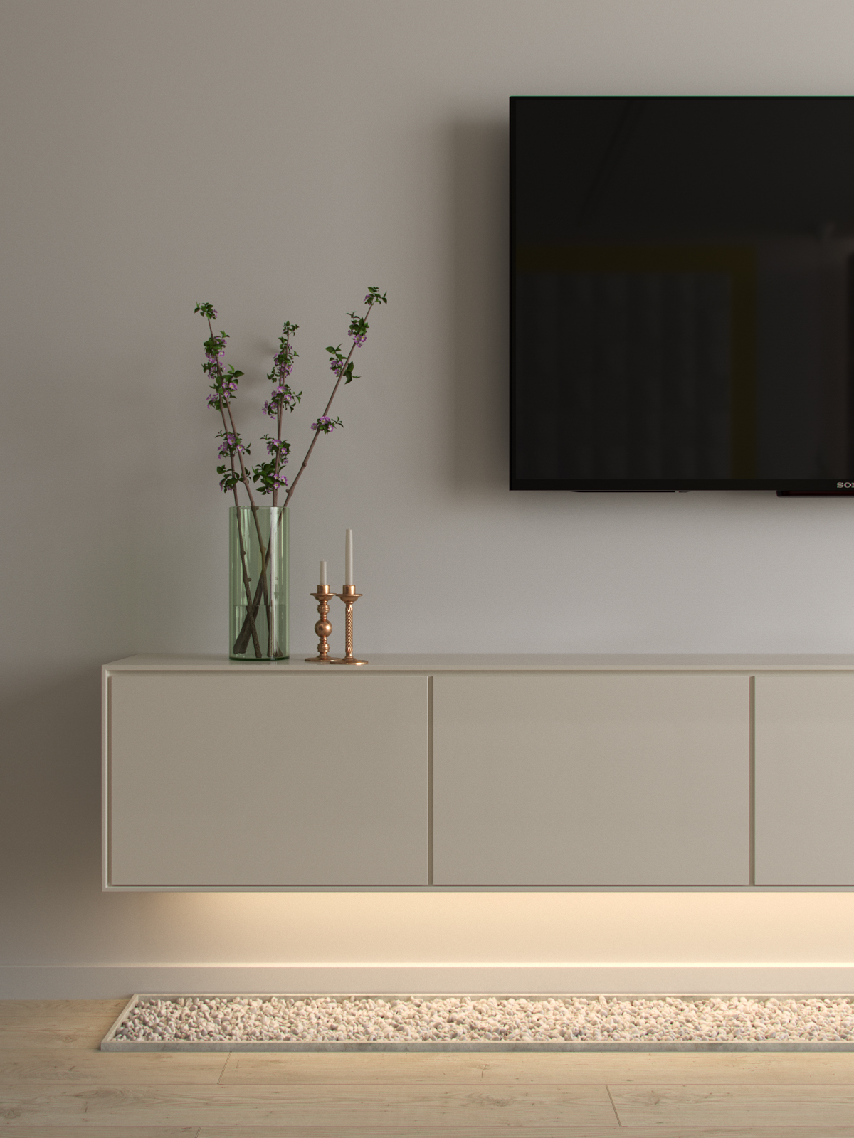 Главное, что бы туалет там не устроил :) Я как-то делала интерьер с подобным оформление. Там камни были под каленым стеклом. Так что кот там в полном пролете :)
