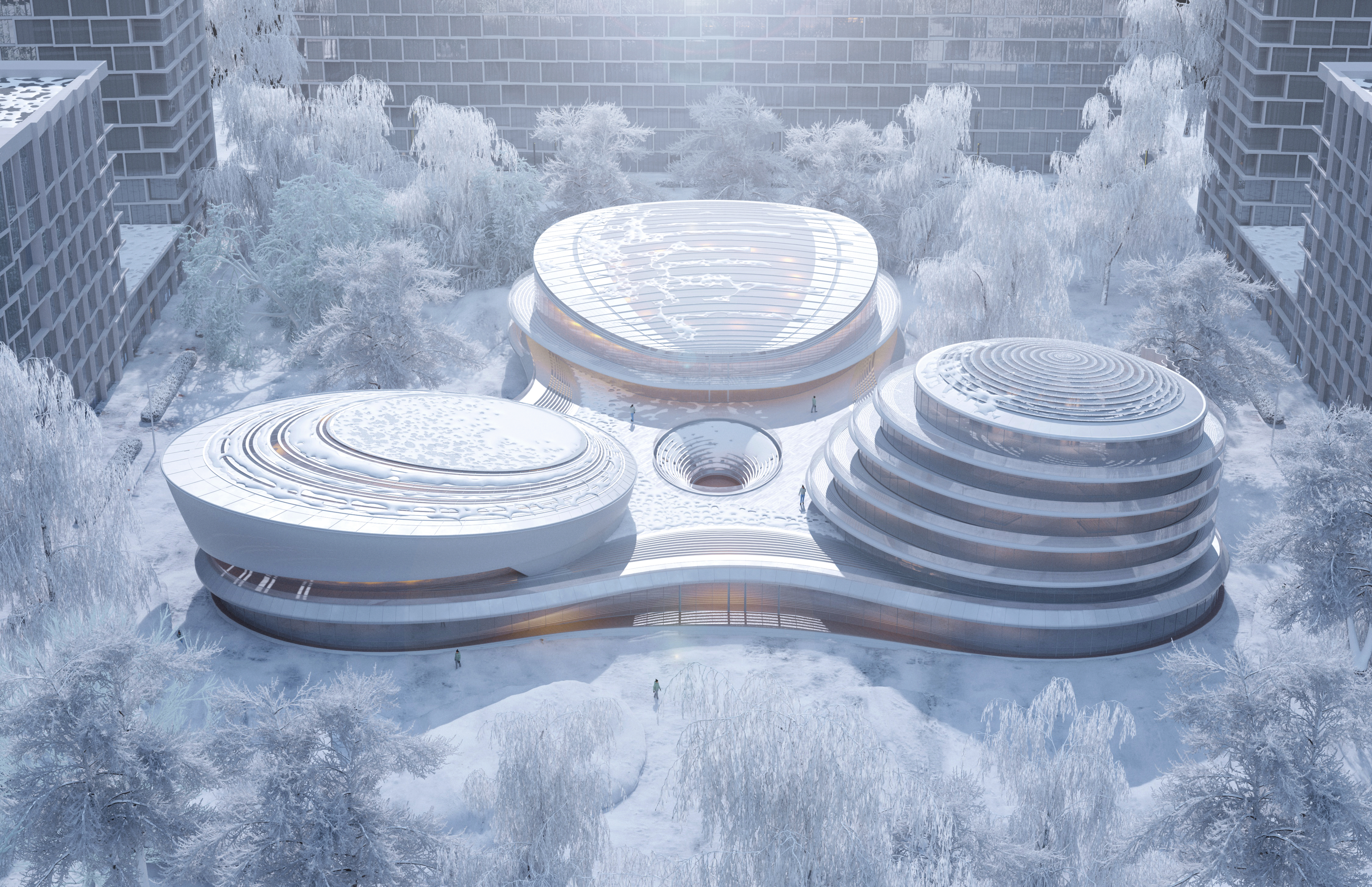 Мне кажется, что люди здесь лишние. Это уже какой-то стереотип у людей сложился, что архитектуру надо разбавлять людьми для оживления сцены. Но в некоторых моментах они очень сильно бросаются в глаза и все внимание переключается на них. Другое дело, если люди были бы где-то вдали и не были бы в центре внимания. Особенно выбивается девушка с кофе, который поблизости нигде не купить. Да и вообще странно видеть людей где-то в открытом поле))) Так и люди одеты по осеннему с расстёгнутыми куртками, вообще выбиваются из общей картины.