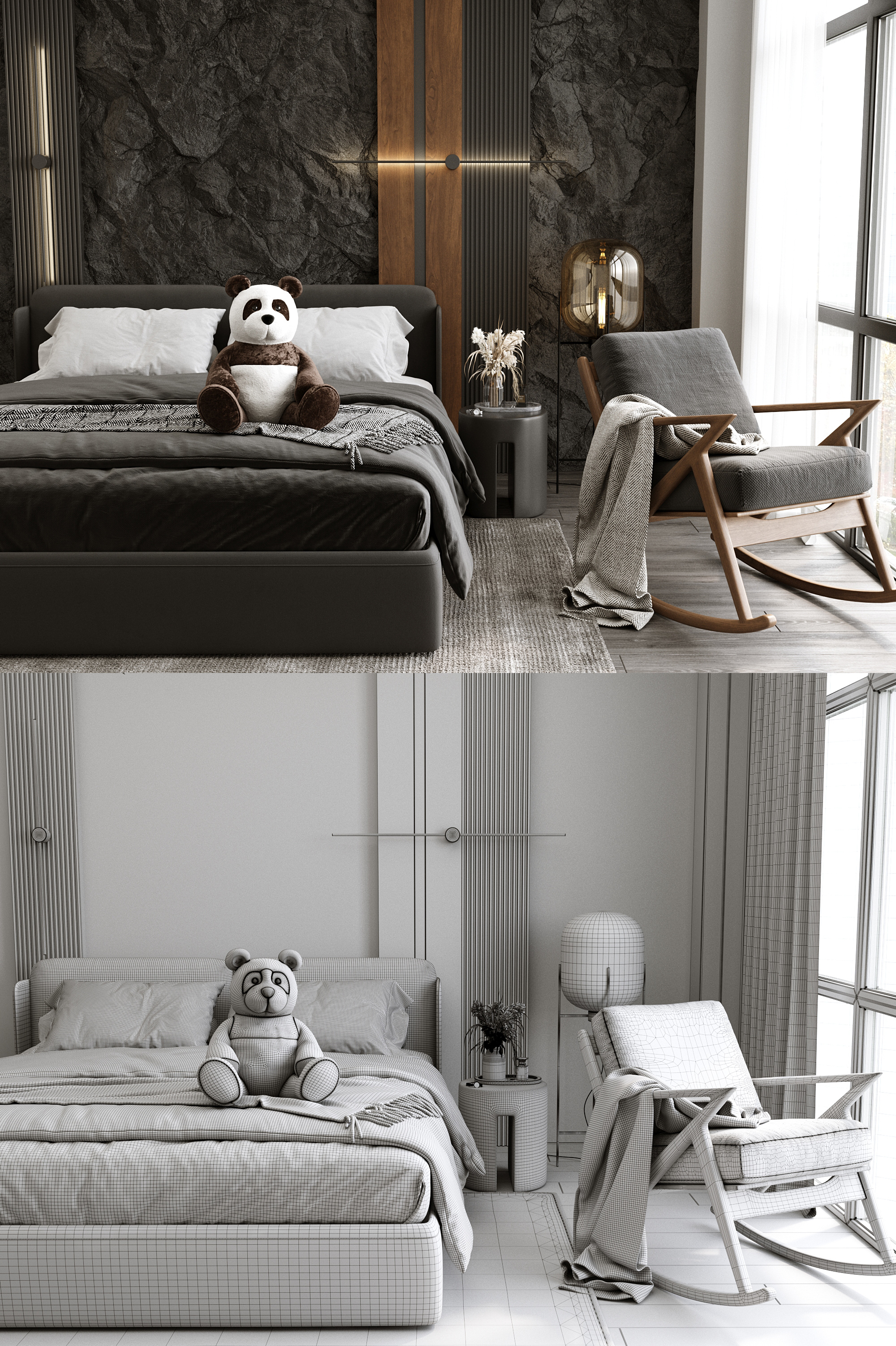 Интерьер черной спальни от Quality Pro. Современный и качественный интерьер. Дизайн спальни на высоком этаже здания. Я потратил на это 1 день. Я предоставлю вам еще более качественные дизайны и модели. Поддержи меня.