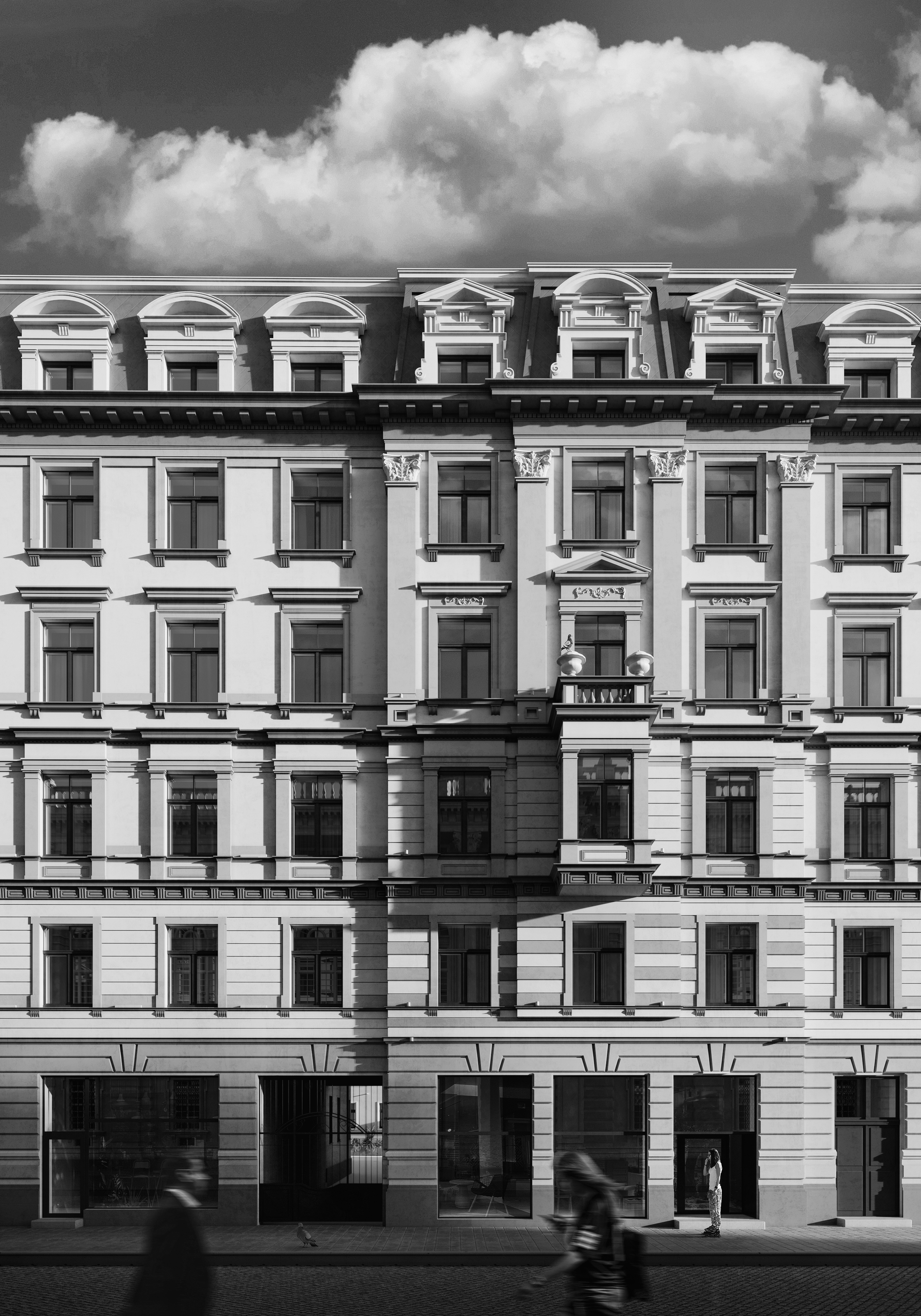 Авторское видение визуализации проекта реставрации фасада исторического здания. Объект находится на улице Blaumana iela в Риге. Больше ракурсов в Behance: