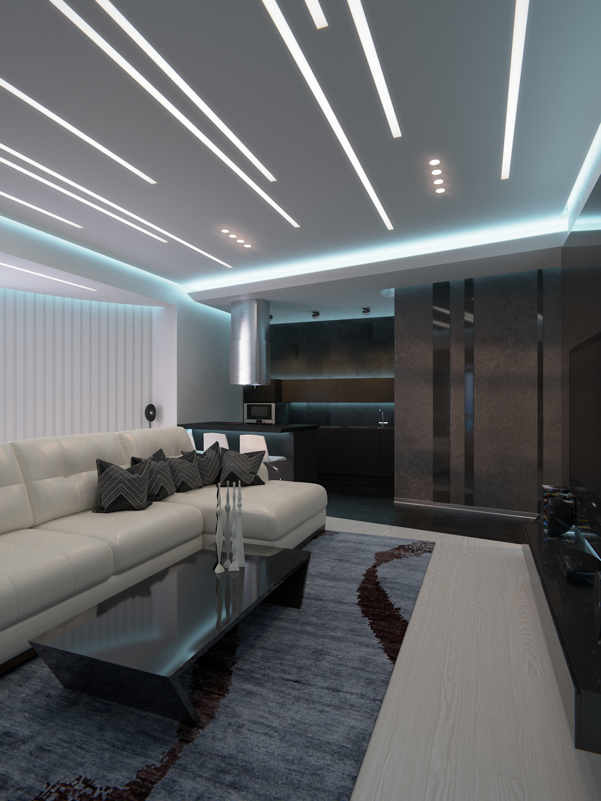 О проекте: В данном проекте мы выступали в роли подрядчика, проектирующего часть помещений частного жилого пространства квартиры в многоэтажном жилом комплексе "ФЛАГМАН". Проект был разработан по заказу одной из дизайн-студий города Сочи "Grani Studio". Нашей задачей была разработка основного жилого пространства, в которое входила прихожая, зона кухни, гостиная и домашний кабинет. На основе поставленной задачи, было разработано пространство в современном стиле, простое и в то же время достаточно динамичное и интересное за счет различных типов освещения, современных материалов и изменения топологии планировочного решения.