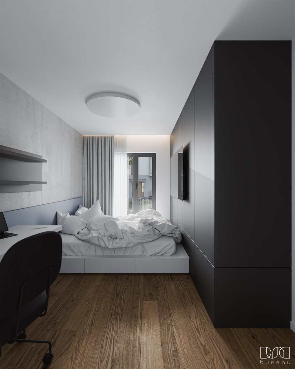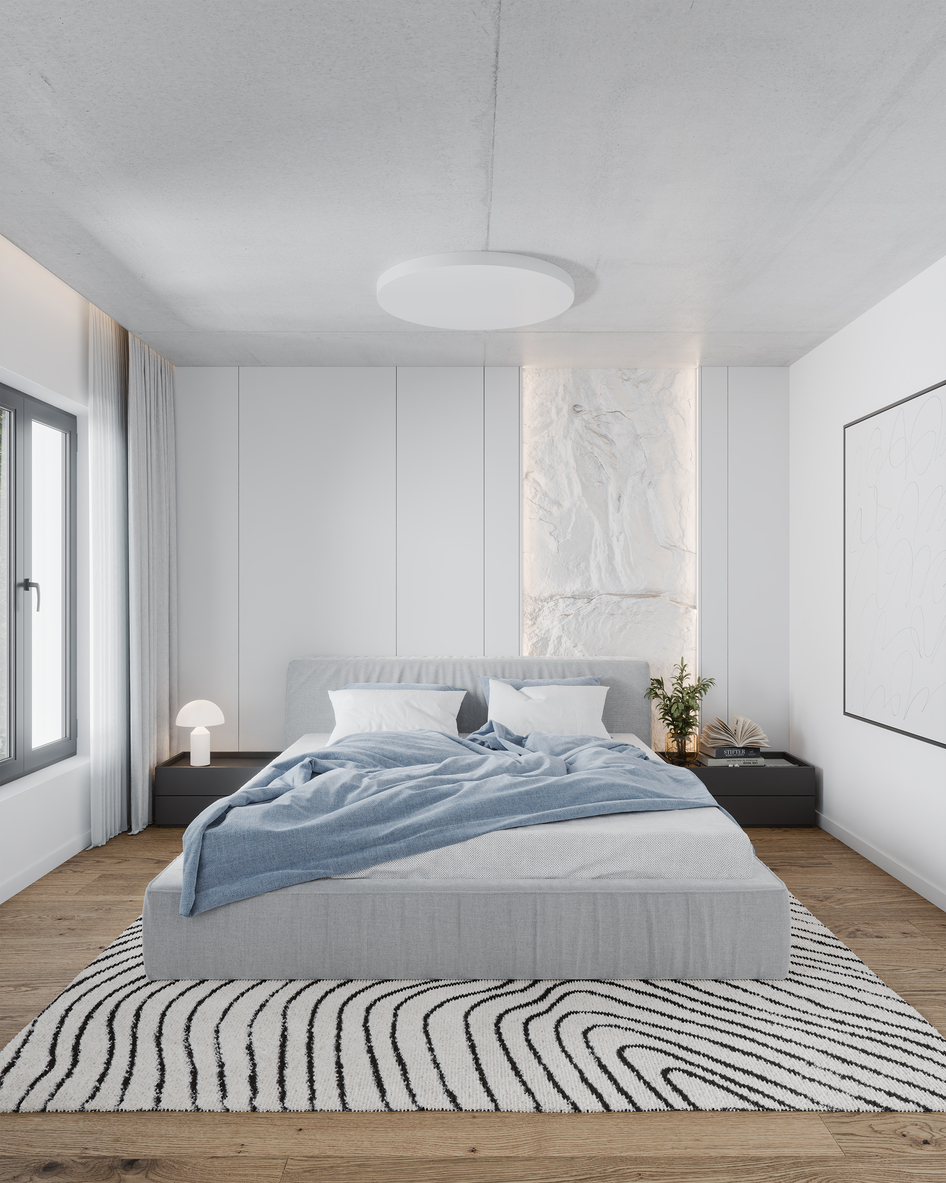 Классно! Оттенки голубого красивые, спальня белоснежная со скалой - загляденье