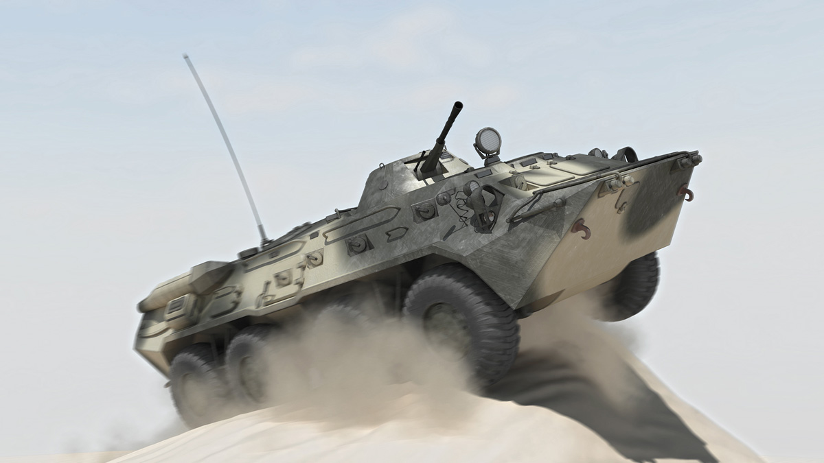 Motion Blur фэйковый? Почему морда не смазана? Что-то похожее возможно, если бы он вокруг морды своей вращался в заносе, но тут же линейное движение. И граница смазанности четко видна, вообщем, большая беда с блюром, достаточно было на колесах сделать. Я далеко не спец, но по-моему раскраска у него не для песков, эти темные пятна выдадут его. По моделированию ничего сказать не смогу, мало что видно, но вот мелких деталей не хватает - это да.