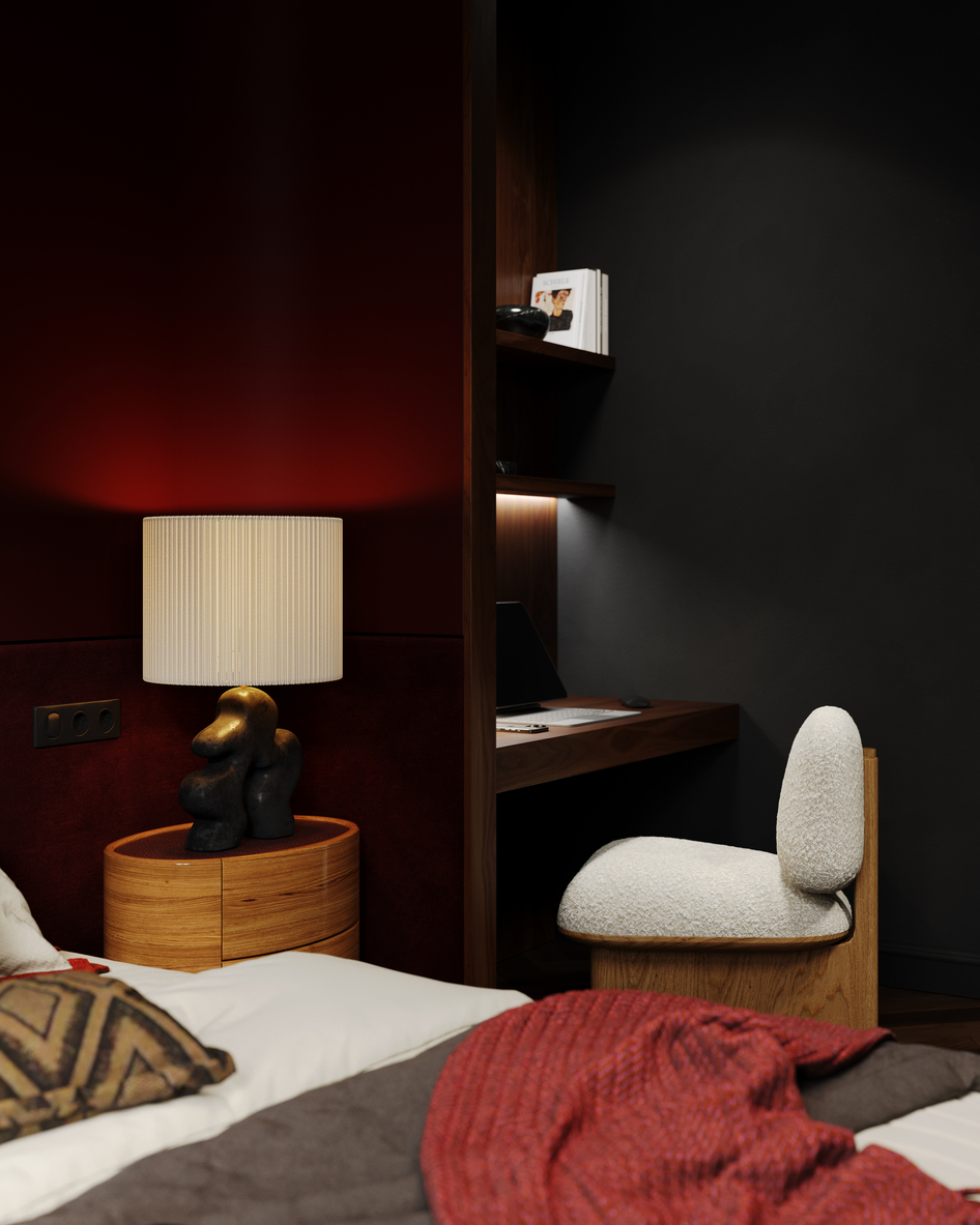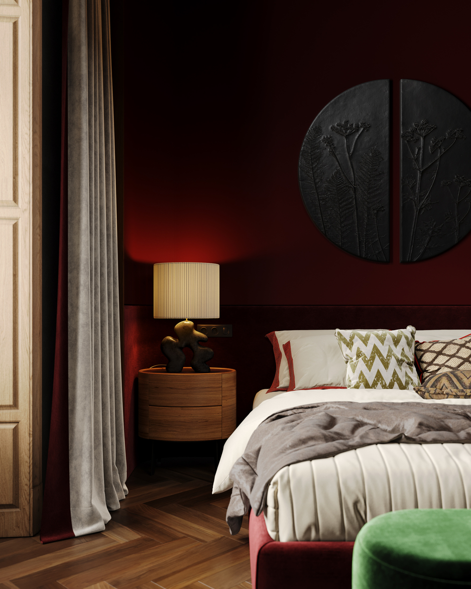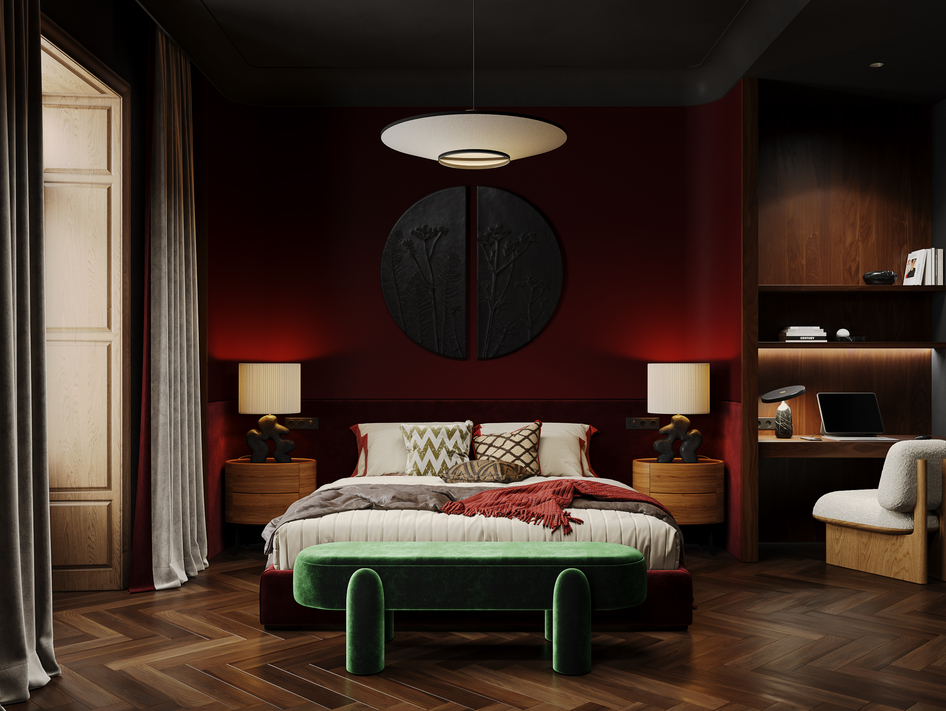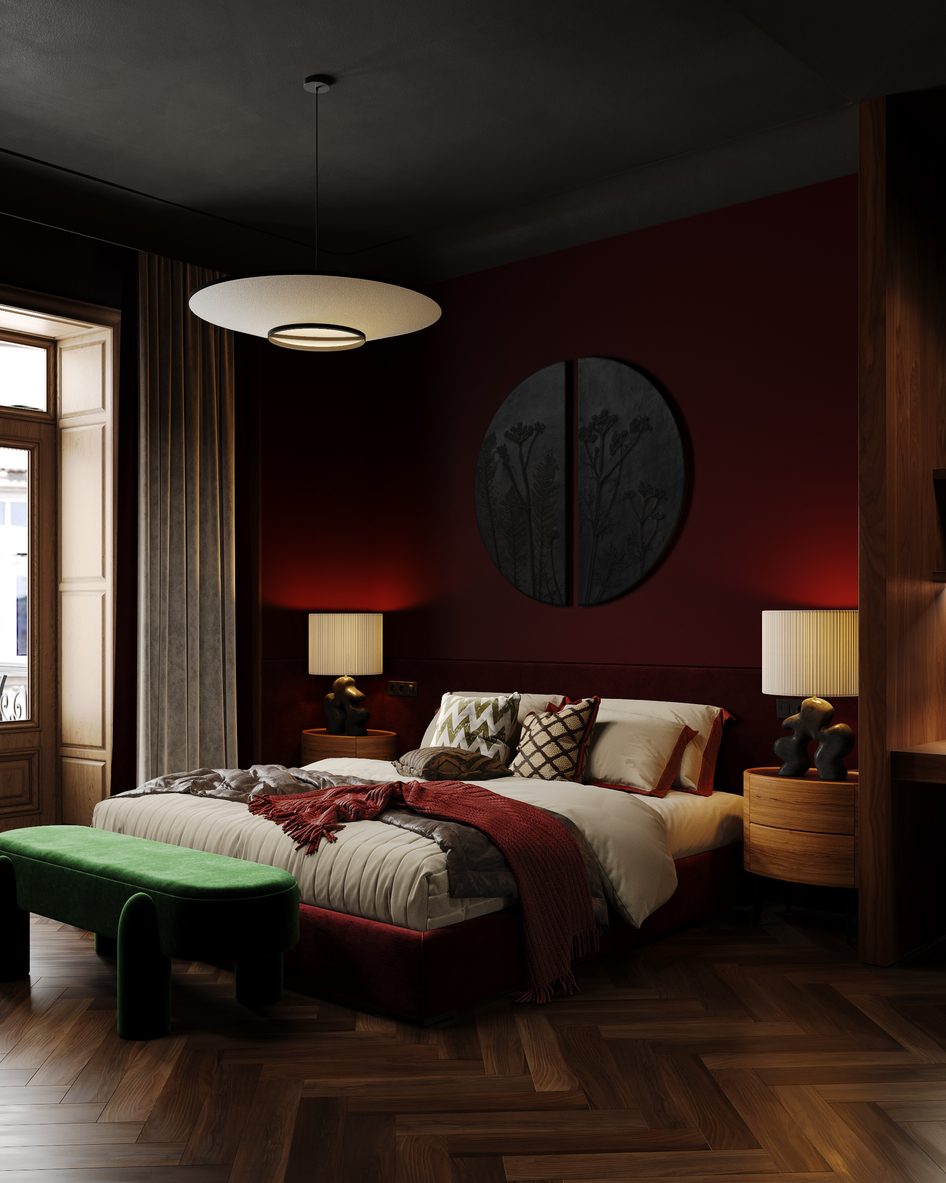 На первом ракурсе пережгли красную стену. На 2м - бросается отличие цвета с 1м ракурсом покрывала, на кровати все глянцевое стало матовым. На 6й картинке белая подушка пересвечена.