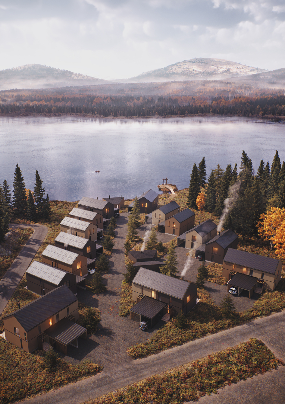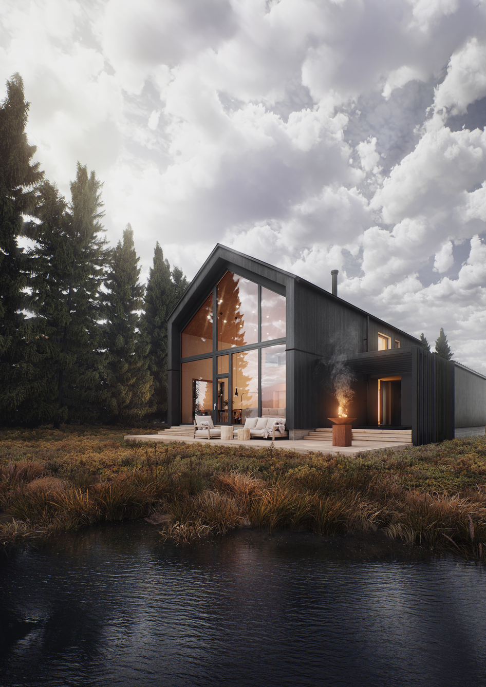 фон рендерился как простая картинка экстерьерная с нужным положением камеры / пропорциями кадра и окружением и сохранялся сразу с альфаканалом для неба чтобы потом на интерьерном ракурсе можно было подкручивать положение солнца и играться с облаками