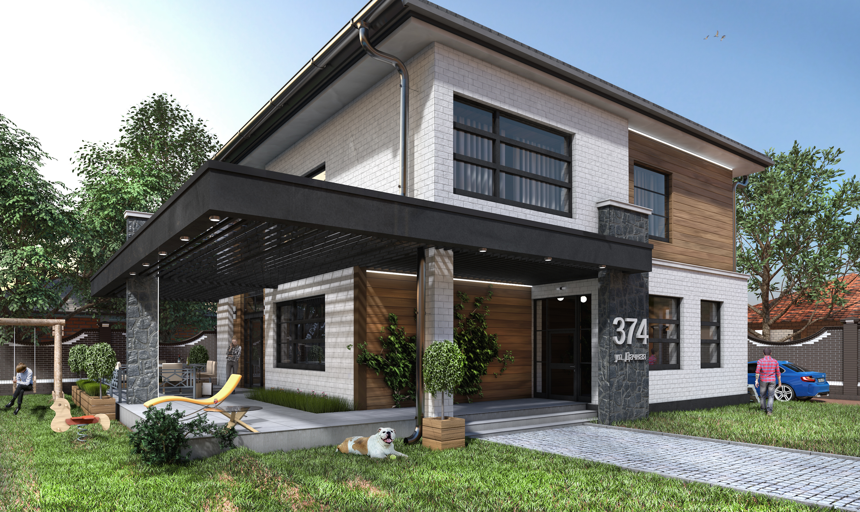частный домик в современном стиле.. Заказчик хотел что попроще)) над навесом и его консолью конструктора отдельно делают расчет чтобы увязать с фундаментом