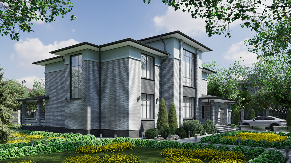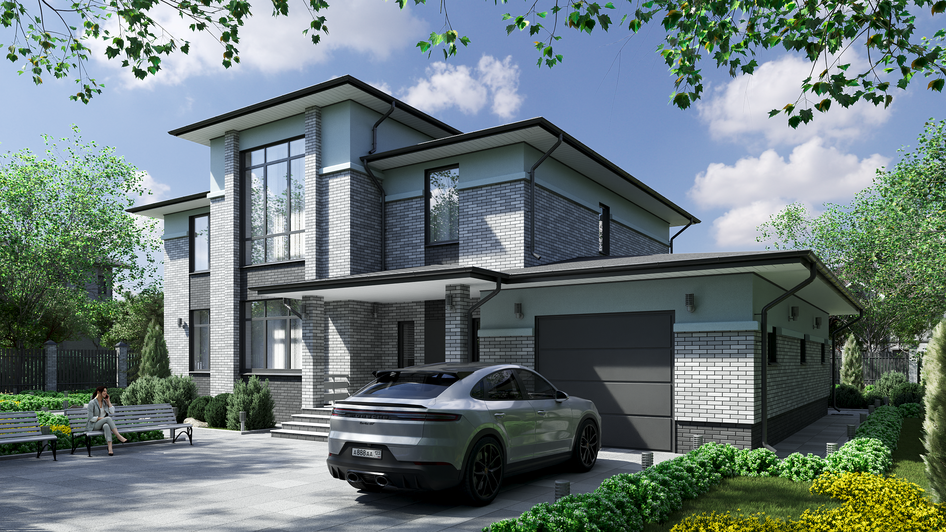 Задача: показать будущий вид в выбранной отделке. Сюда выставляю один из возможных вариантов (по итогу был выбран другой вариант, красно-коричневый), а этот мне разрешили забрать в портфолио).