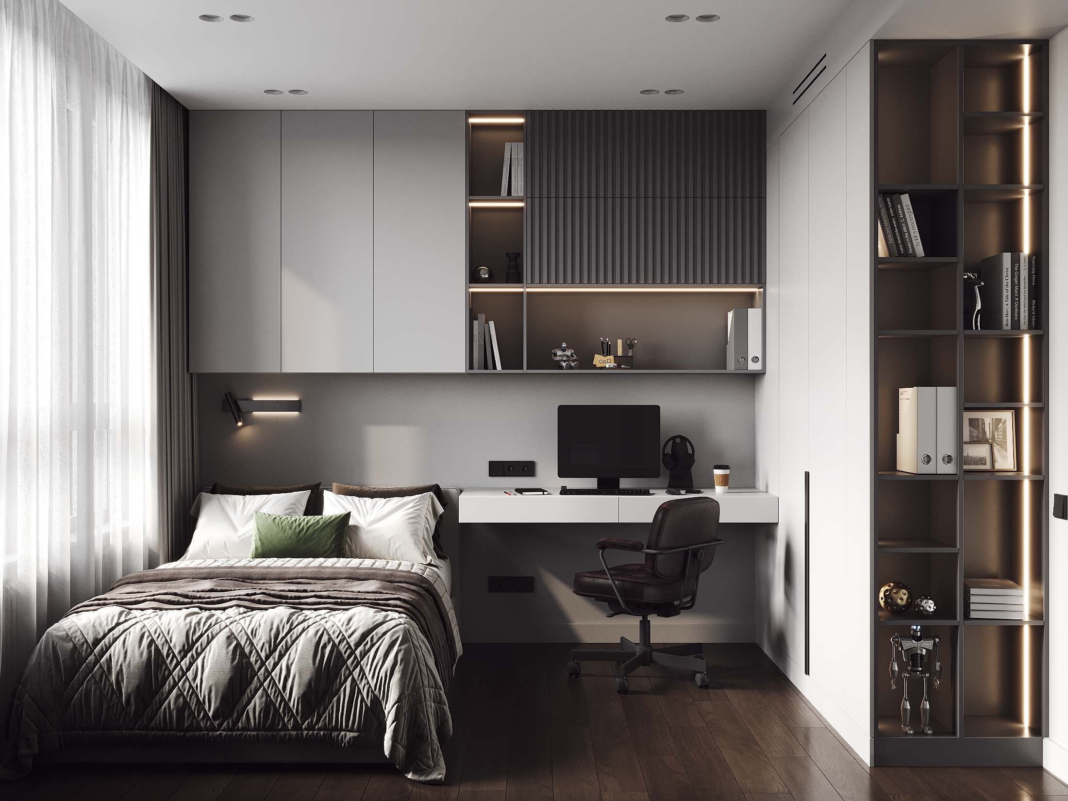 Хороший дизайнер. Стол аккурат к кровати - моё почтение! Камерами пыток дизайнер не занимается?