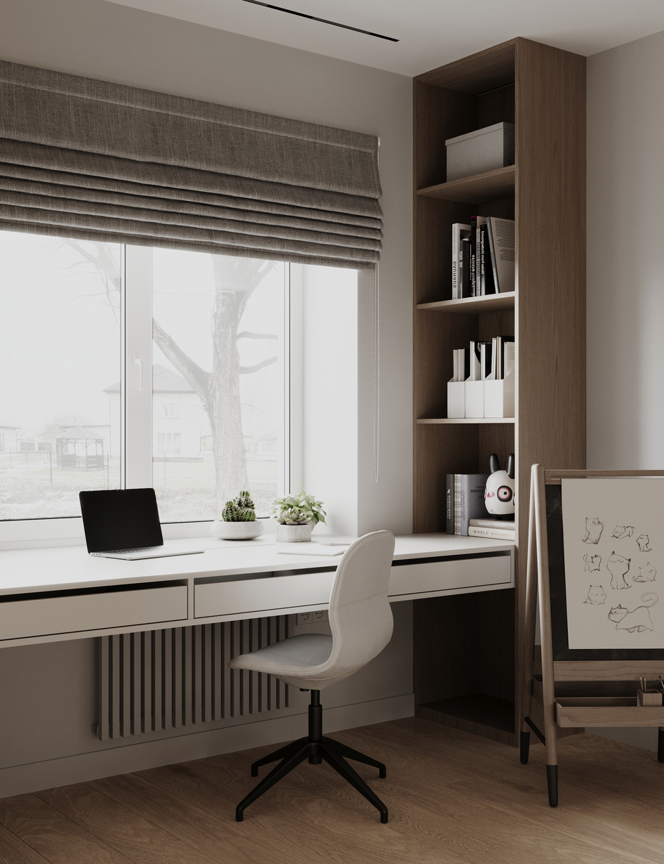 Все хорошо. Только вот, по моему, зеркалу за дверью не место, особенно в детской. Разобьют. Также, фон за окном сильно высвечен и немного завален. Все остальное норм.