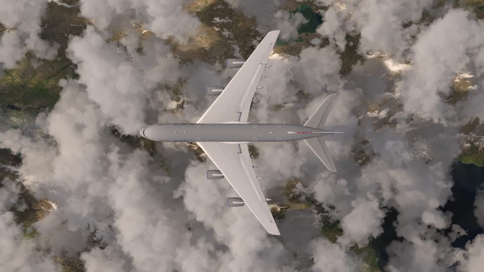 что то здесь не сходится, нужно или самолет заблурить или облака. Судя по теням от самолета он летит рядом с облаками