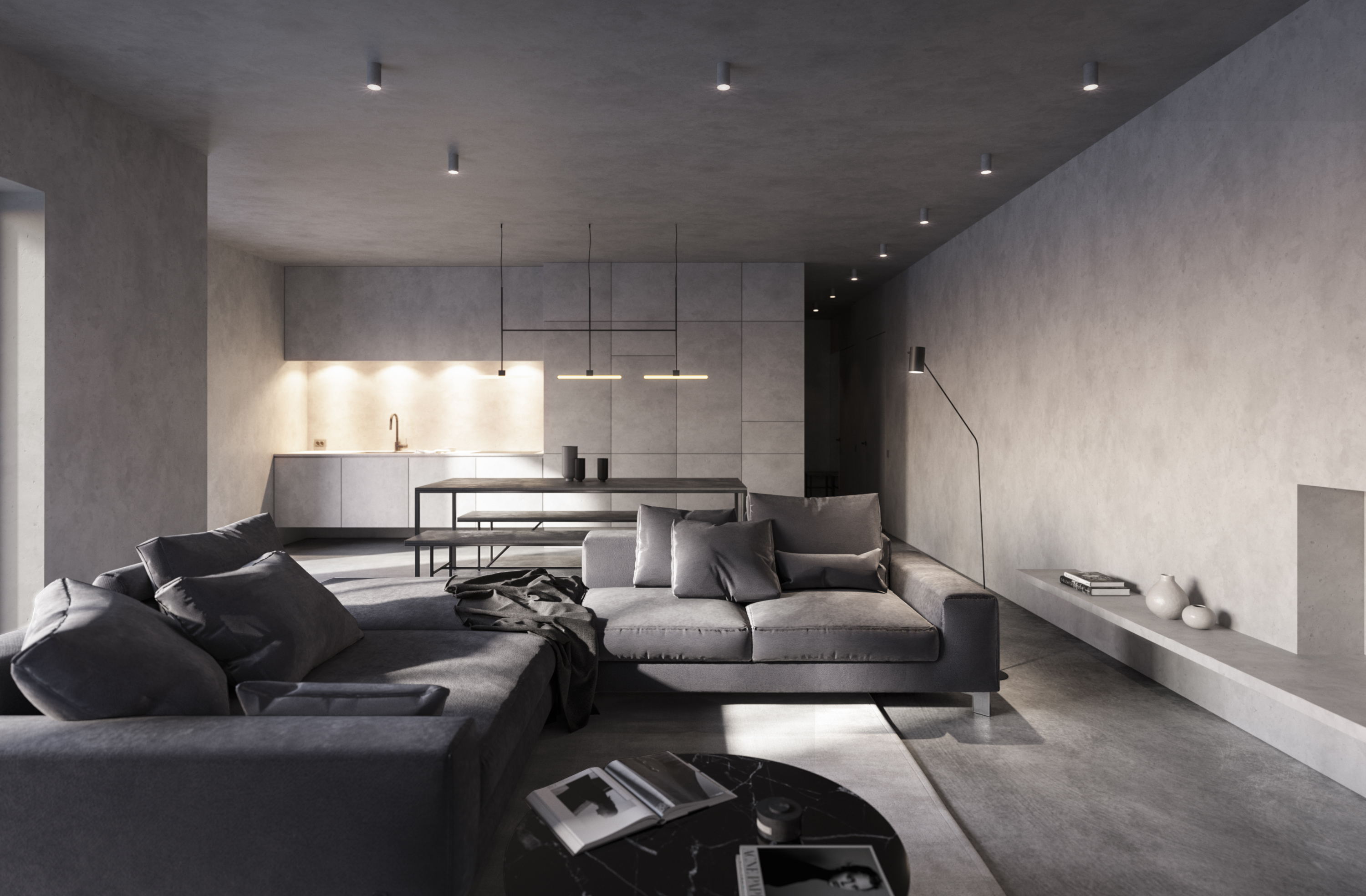 Здесь и не задумывалось изображать жилой интерьер, это концепция. Основная задумка в цвете, освещении и формах. Пример: завод Бофилла. Люди обустроили внутри мастерскую и жилье. А место на первый взгляд не самое уютное.