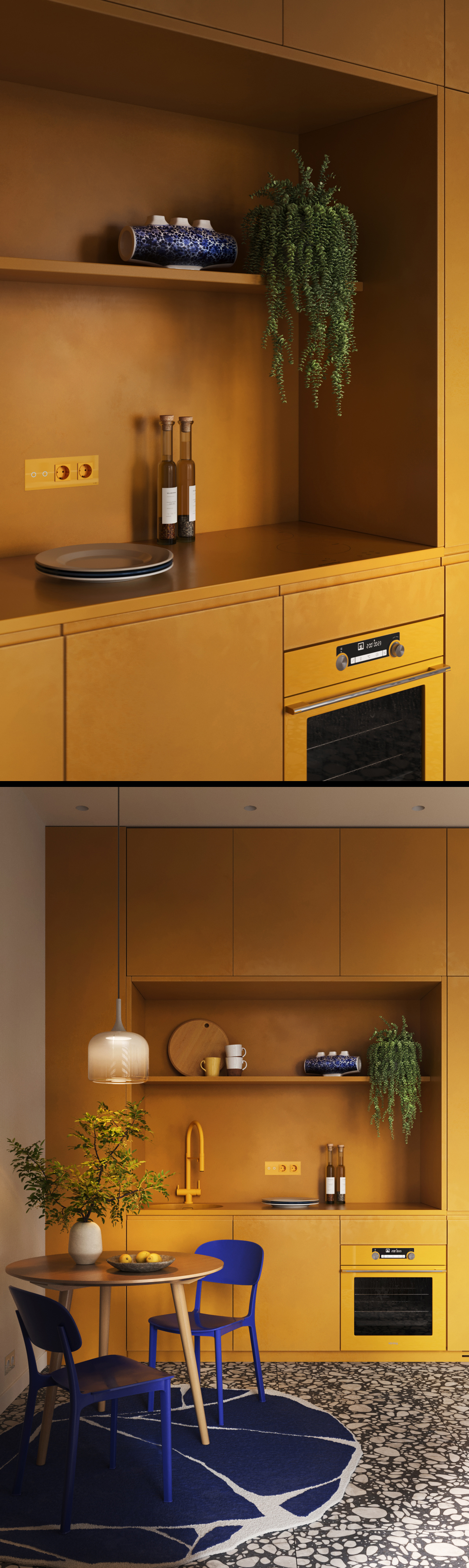 Проект для себя. Захотелось пофантазировать о цвете в маленьком пространстве. Больше картинок здесь: