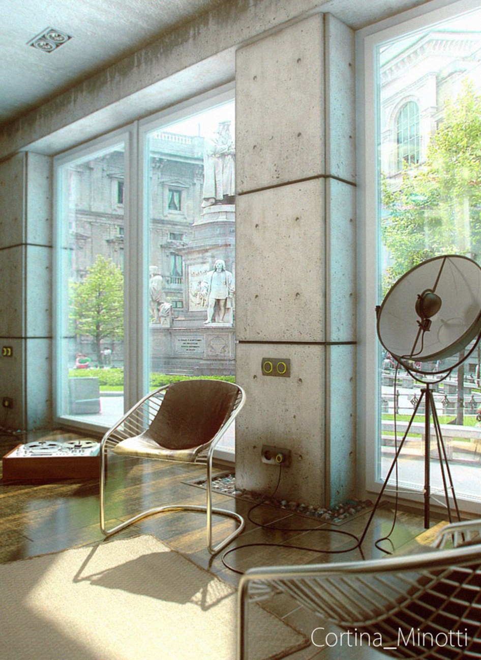 да я и сам не знаю что это......квартира или витрина ........скорее витрина бутика.....экспозиция.....на бэке площадь перед Ла Скала......откуда потеки?....странный вопрос......от воды .....для архаичности как раз исрользован магнитофон.....розетки спецом современные.........попробовал сделать как Мрак говорит - истиная правда.....получилось лучше.......буду еще тогда переделывать....