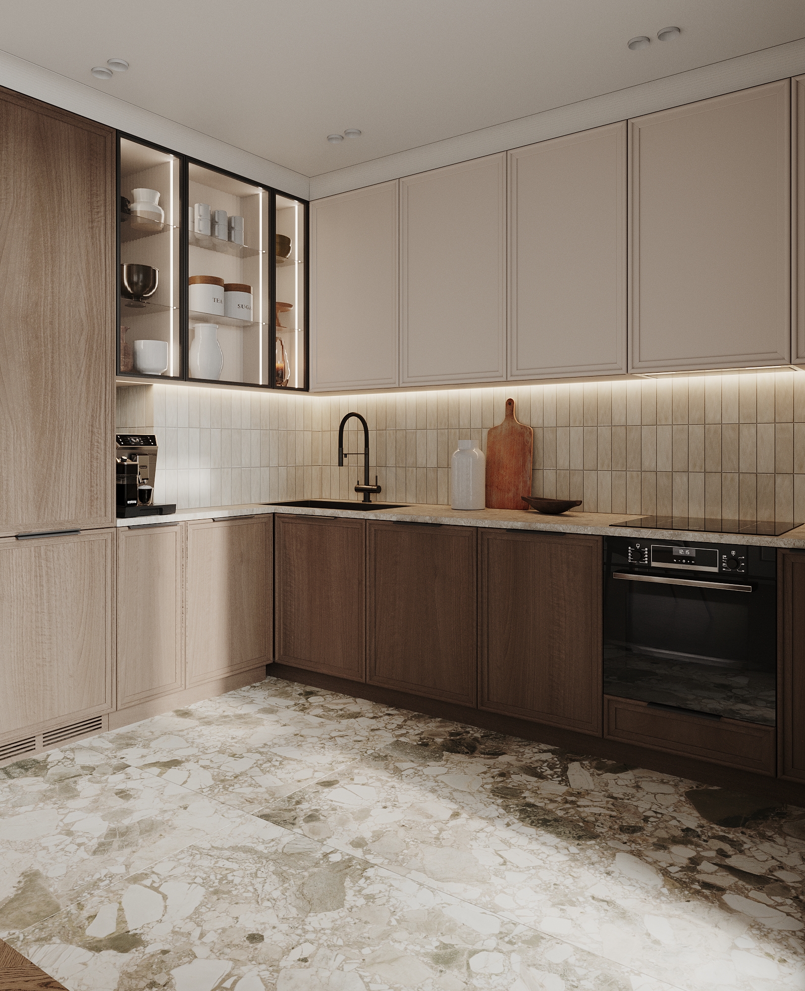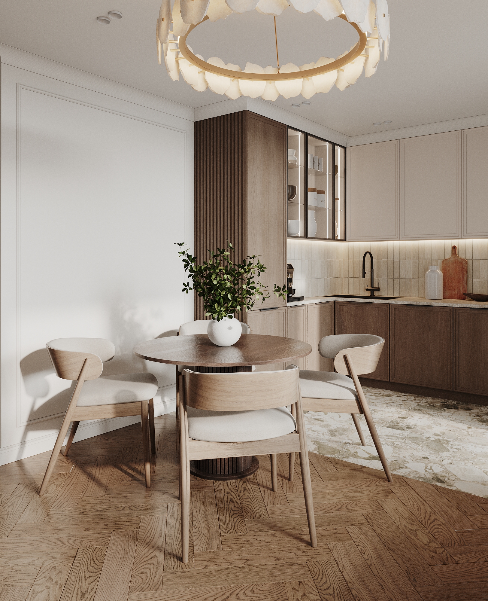 3D Визуализация уютной и теплой кухни-гостиной в городе Москва. Уважаемые дизайнеры и архитекторы, я открыт для сотрудничества. Behance :