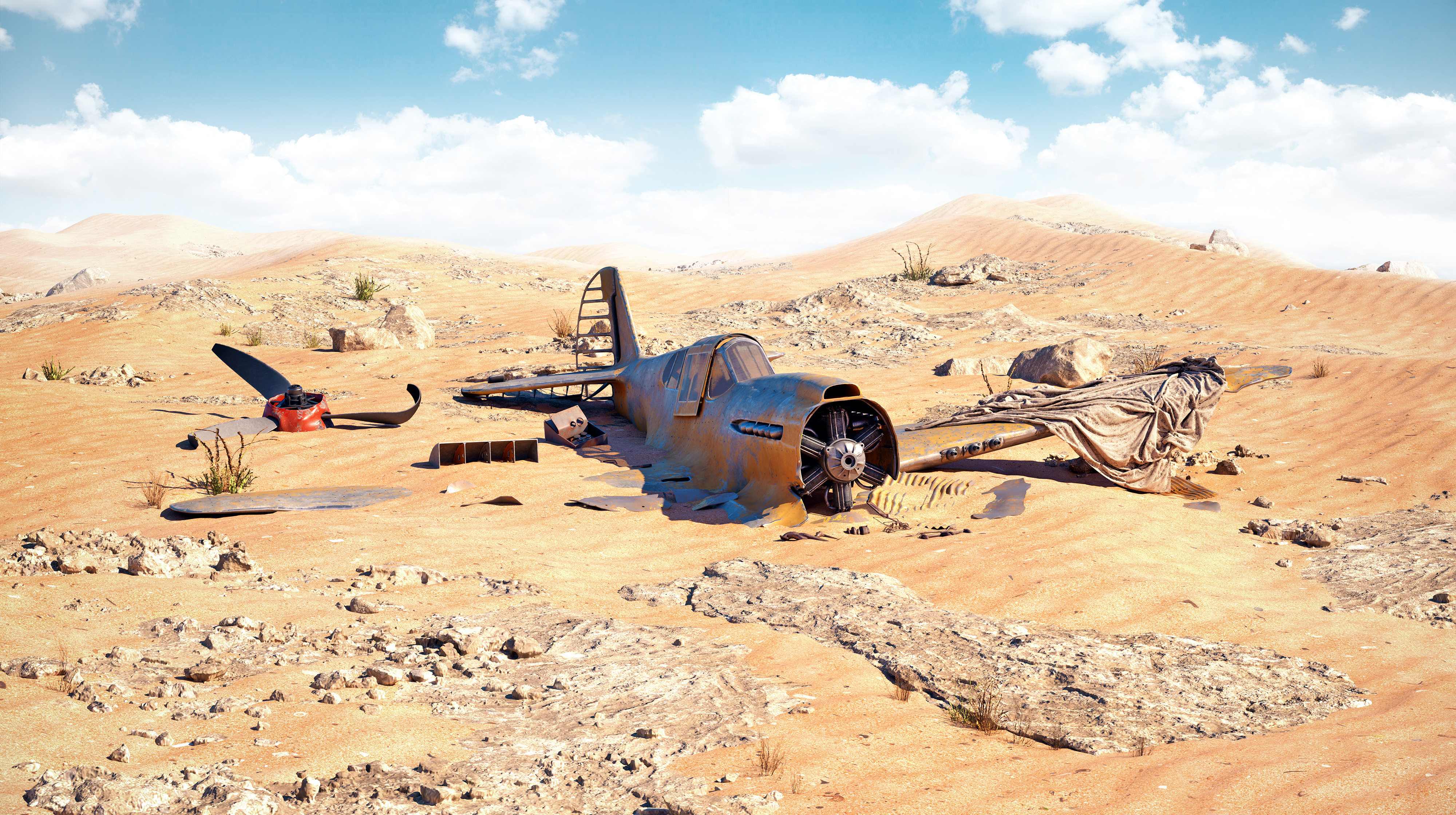 Посредине пустыни был найден самолет Р-40 “Киттихоук” (Curtiss P-40D(E) Kittyhawk). В 1942 году самолет упал в трехстах километрах от цивилизации. Все, что известно о пилоте самолета это его имя, сержант Деннис Коппинг, и то, что он после падения взял с собой самое необходимое, что могло пригодиться в пути. Из истории самолета известно, что его перегоняли с одной базы на другую и, очевидно, в процессе перелета возникли сложности, из-за которых пилот сбился с курса.