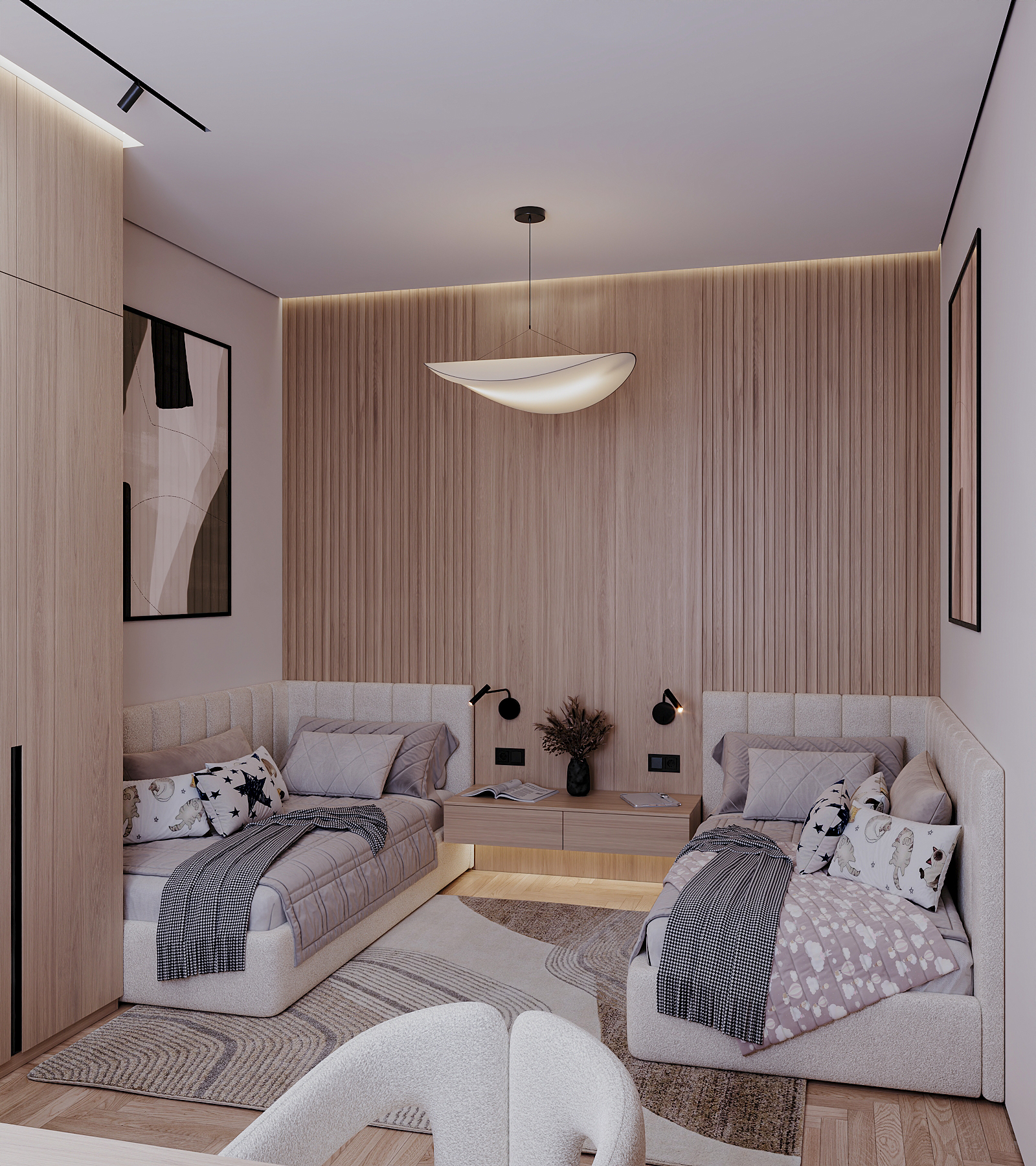 Part 2 of the project for a 2-storey residential building in the 6th quarter of Yunusabad district of Tashkent Here are 2 children's bedrooms and 2 common bathrooms. You can see part 3 in the next section...