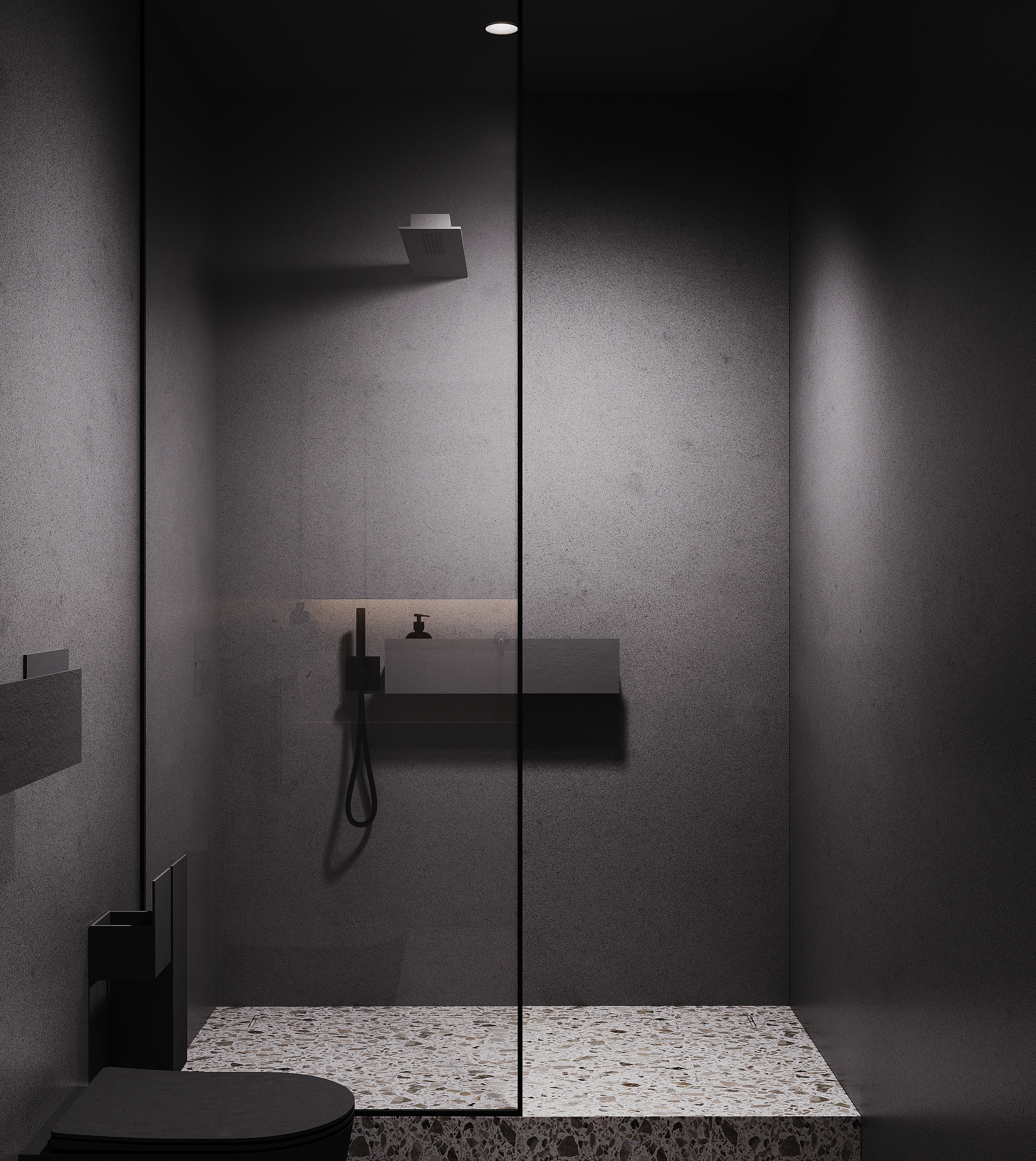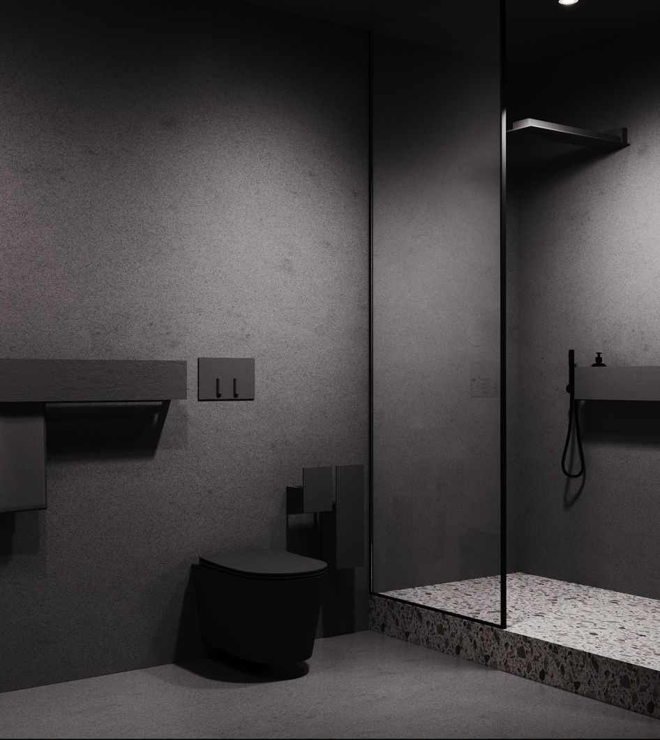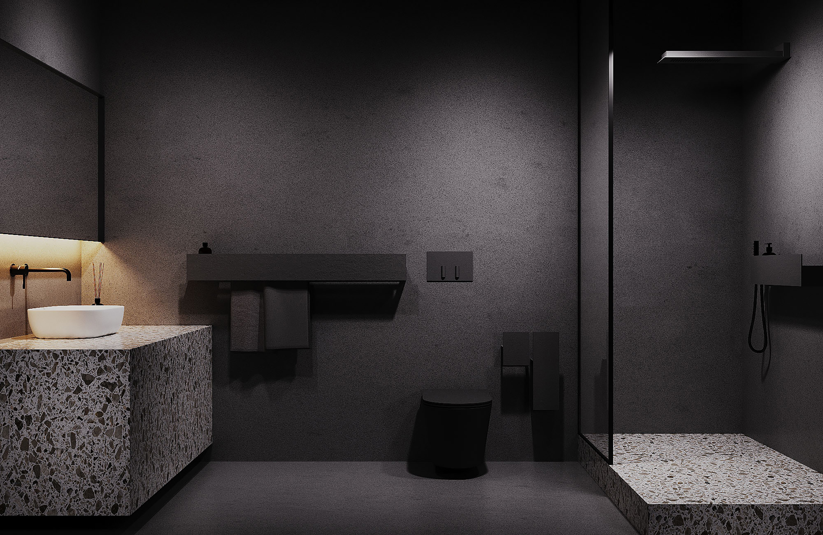 Design of dark bathroom, what made me proud. I was start this work one month ago and finally finished. Software: 3ds Max, Corona Render, Adobe Photoshop.