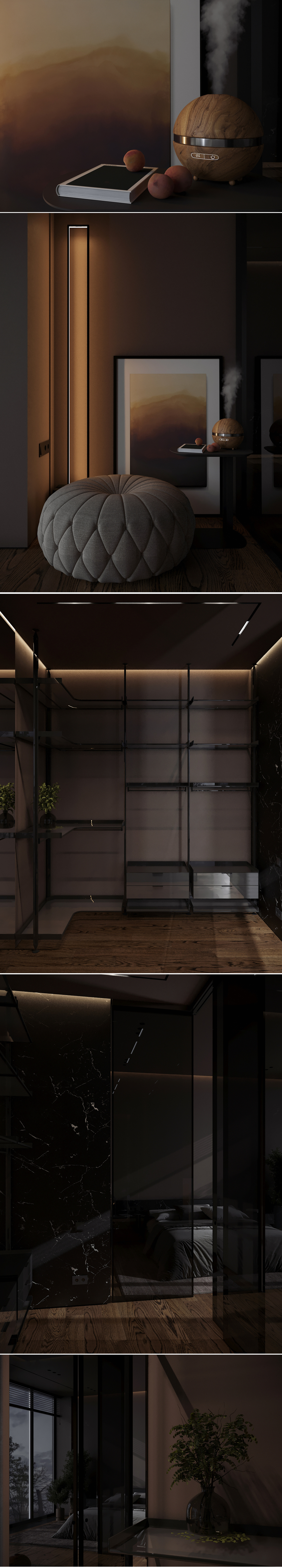 Design: bedroom with wardrobe in a flat Design: Marija Zubalova Visualization: Marija Zubalova Year: 2023 inst: