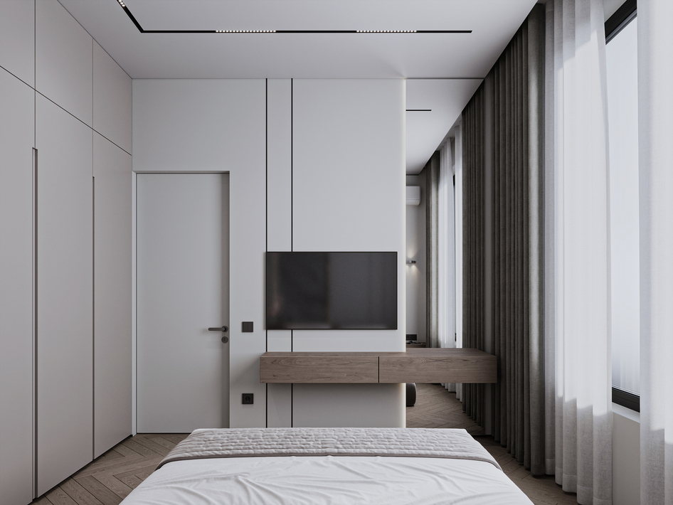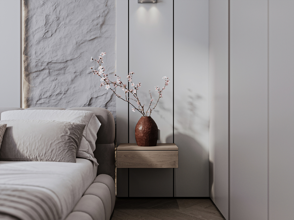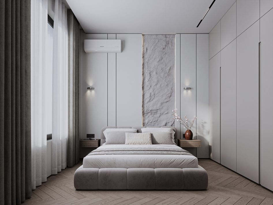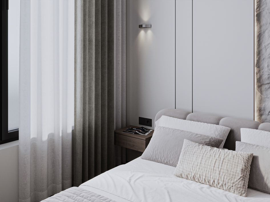 Минималистичный дизайн спальни — это гармония уюта и простоты, где эта деталь имеет смысл. Чистые линии, нейтральные оттенки и продуманный баланс света создают атмосферу спокойствия и расслабления. Минимум мебели, максимальная функциональность: лаконичная кровать, закрытые системы хранения и отсутствие лишних деталей делают пространство легким и просторным. Натуральные материалы — дерево, лен, хлопок — содержание тепла, мягкие текстуры создают ощущение уюта. В такой спальне легко отдохнуть от суеты и перезагрузиться, наслаждаясь эстетикой.