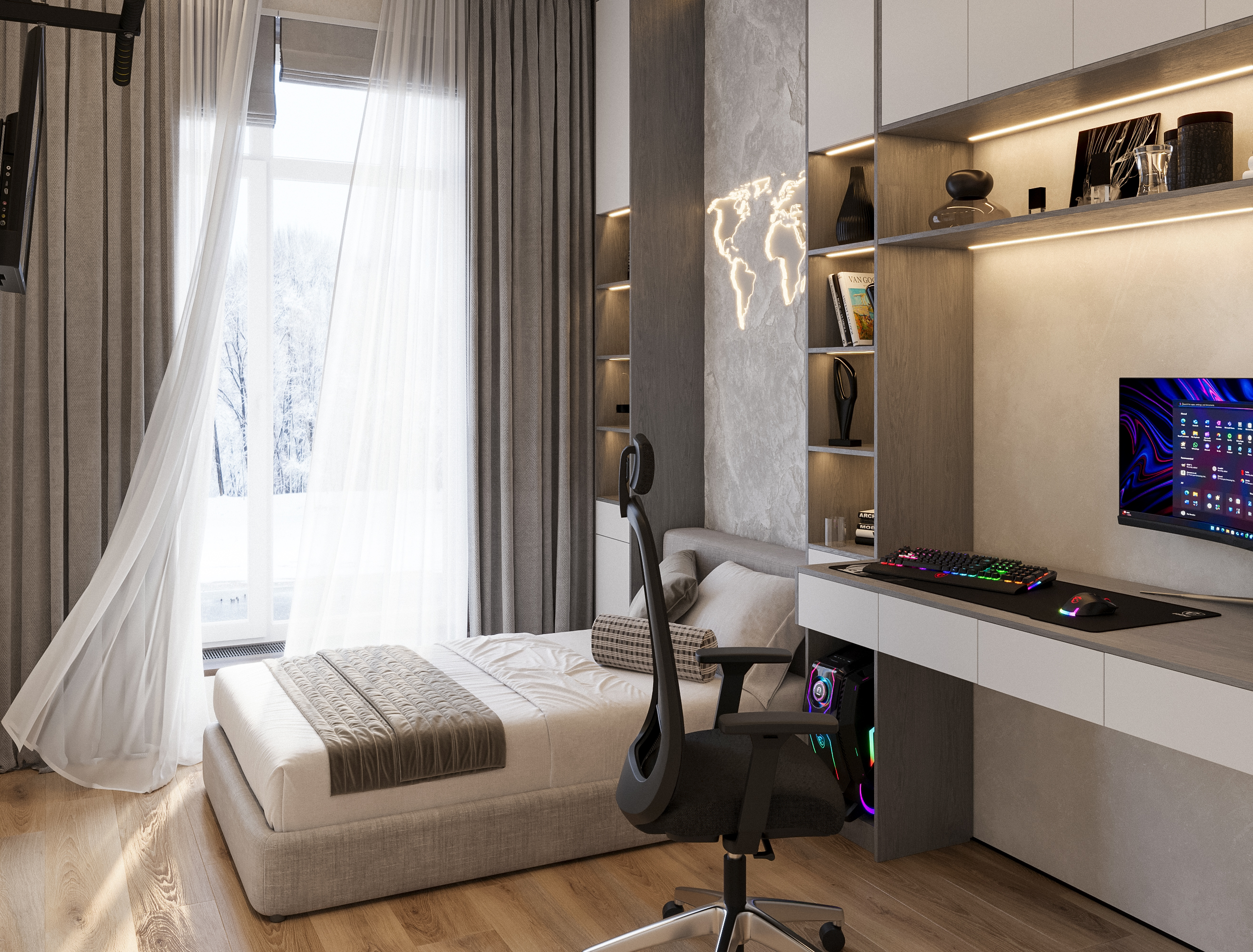 Окно закрыто. Откуда ветер на тюле? Стул с последней картинки надо было убрать. Понимаю, что это было бы не правда и в реале его будет видно, но сейчас он как бельмо на глазу. И камеру я сделала бы чуть-чуть правее, а то кровать некрасиво обрезана. Ну а так ничего, симпатично.