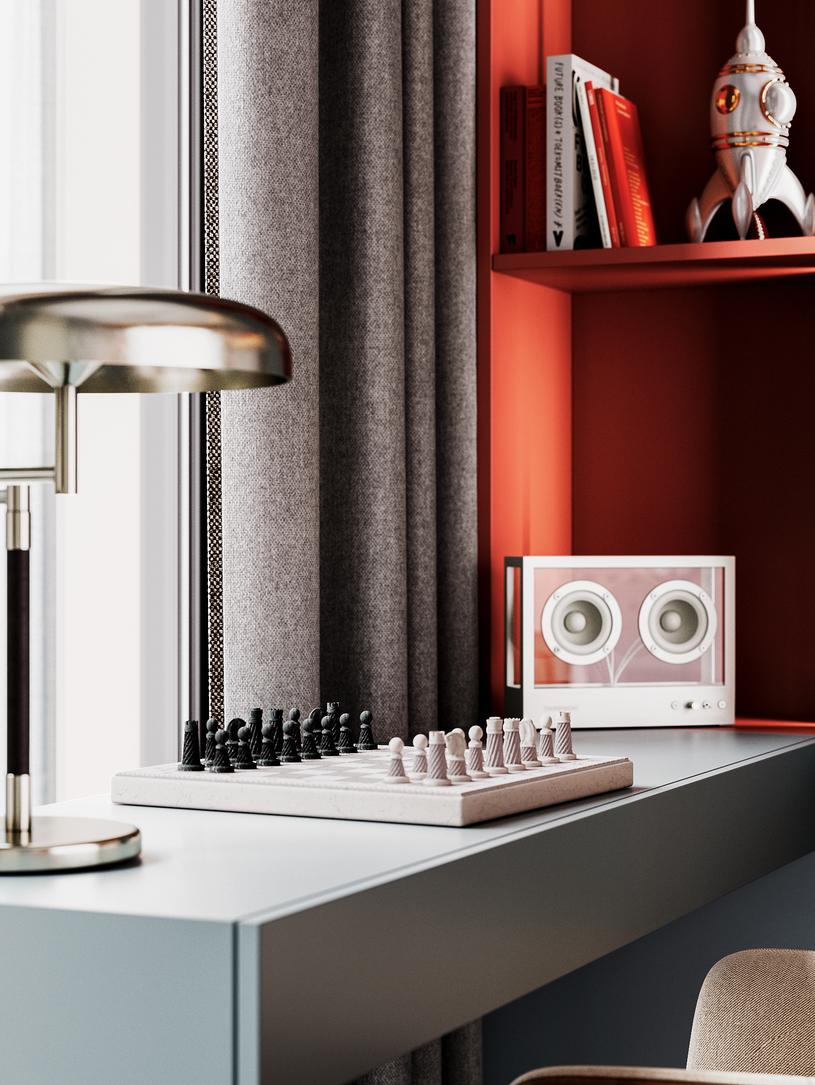Decorative set with transparent speaker and Ikea Art Deco Grimsö Table Lamp