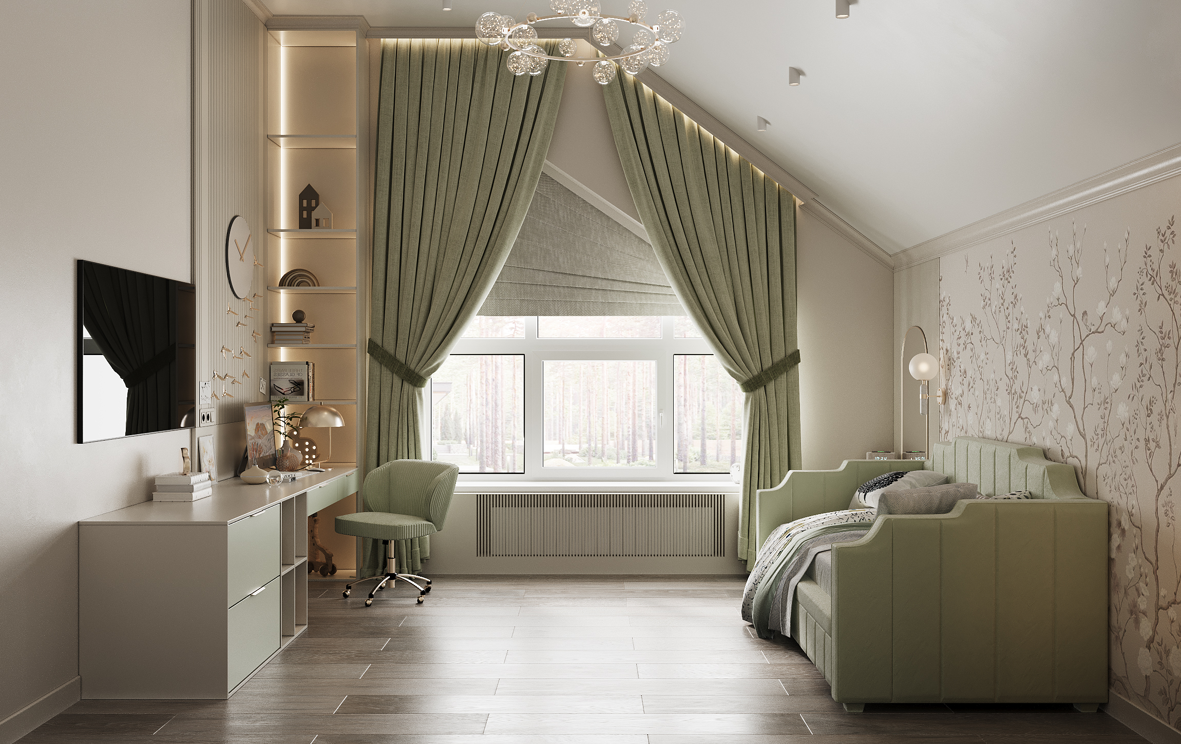Нежная спальня для ребенка из проекта загородного дома